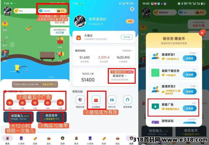 鱼儿兑换收益:鱼儿可以直接在集市换红包(直接提现),也能换金币再买鱼竿,扩大产能,实现“以鱼养鱼”的循环收益!