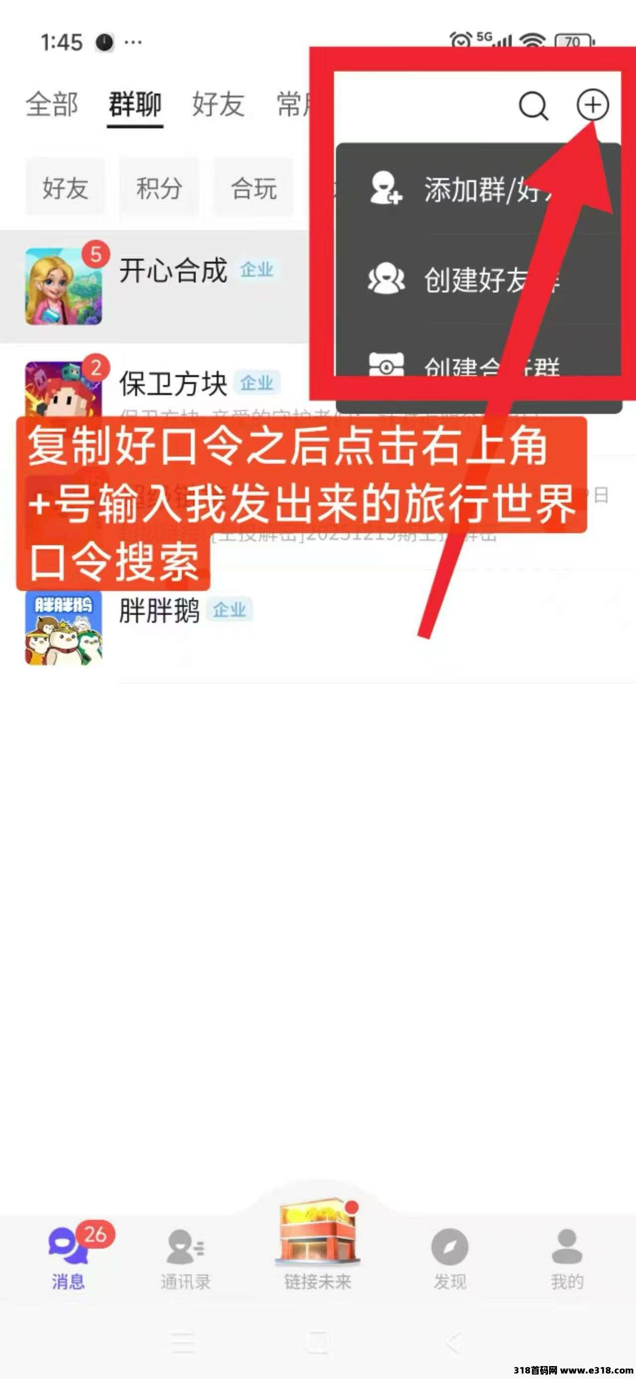复制口令,然后右上角添加群聊,然后左下角预约即可!
