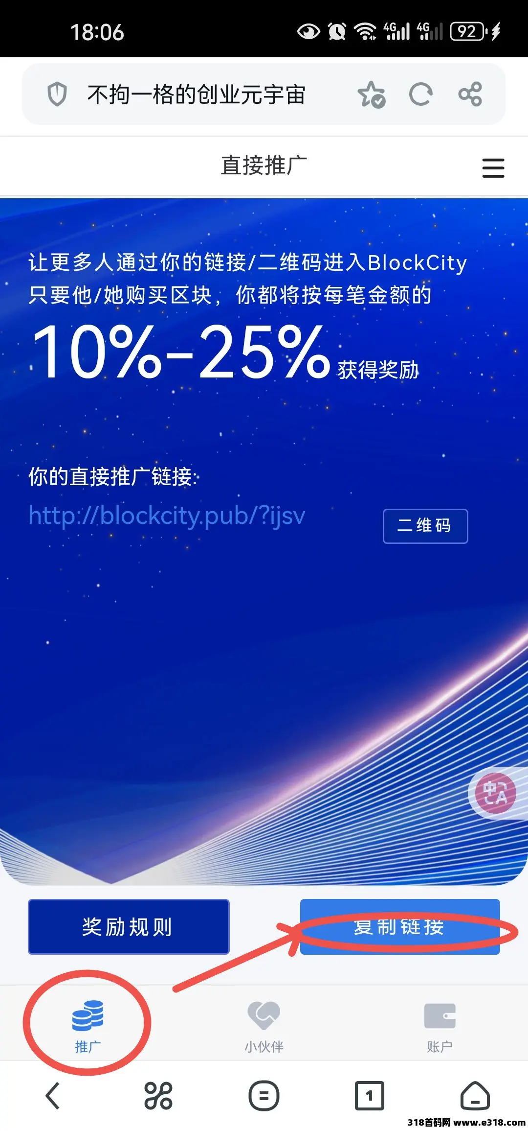 3. 将你的推广链接通过各种渠道进行宣传,用户选择心仪区块购买成功后收益即时到后台