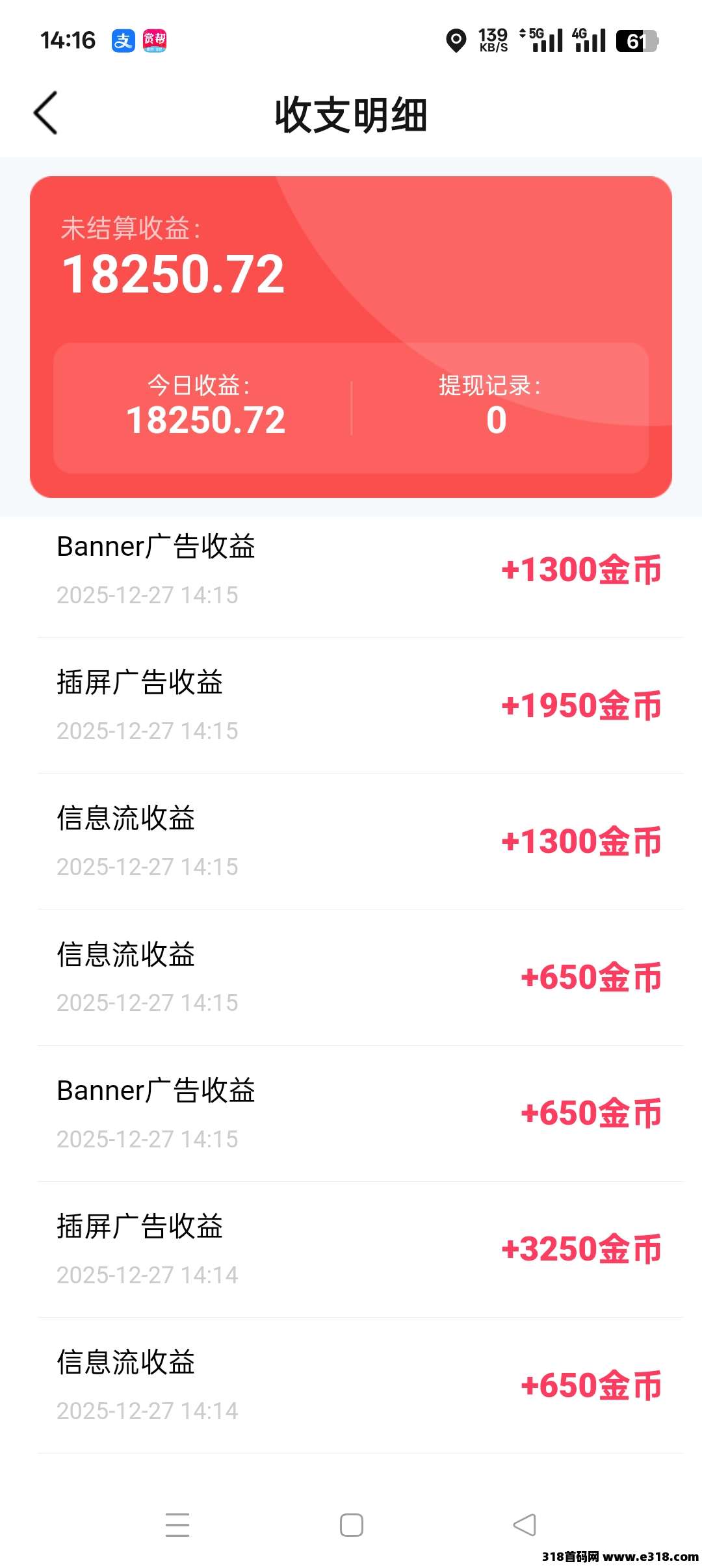 玩过叠浪的都应该知道这个平台的优点就是所有类型的广告,都会给金币奖励,包括开屏广告,插屏广告,信息流广告,横幅广告!