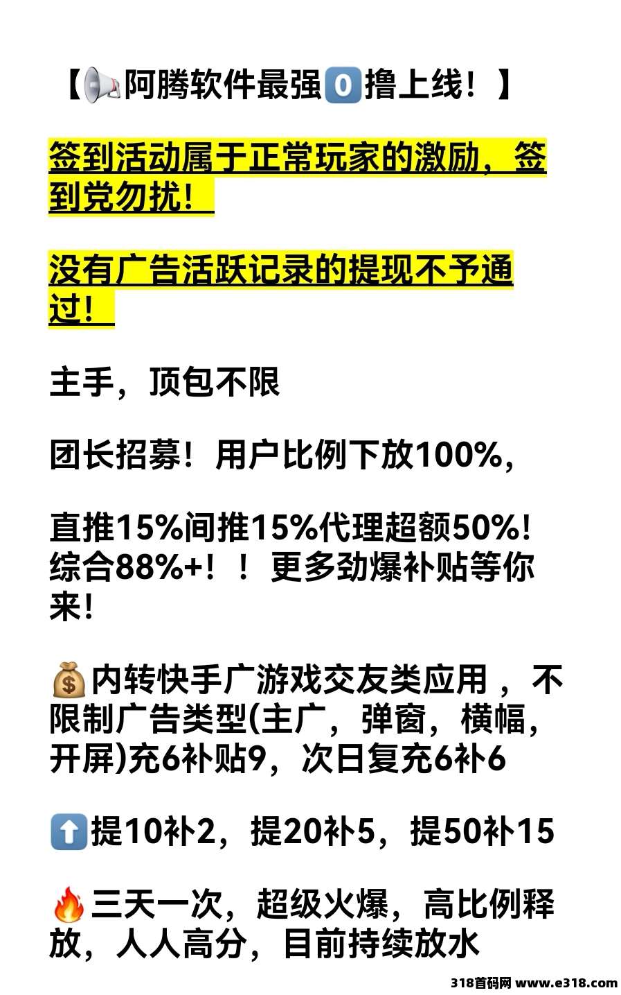 阿腾软件单条广告最高16米,养机后单条广告常见1-5米,个别优质广告可突破10米以上!平台核心对接快手、腾讯广告资源,收益稳定靠谱。