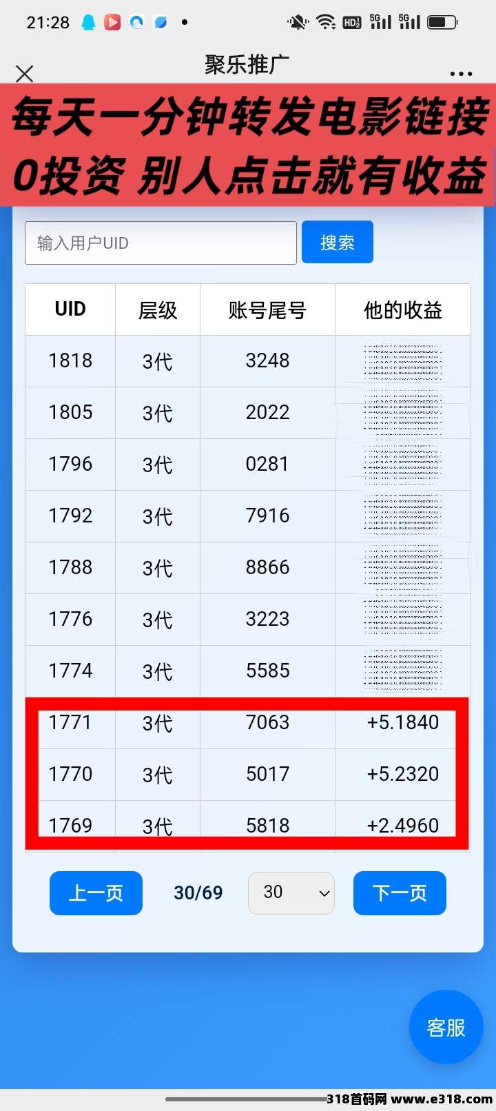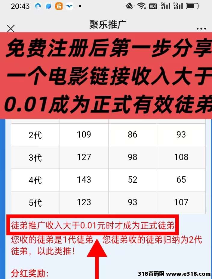 [聚乐影视]看电影有钱賺转发电影链接,五代收益!
