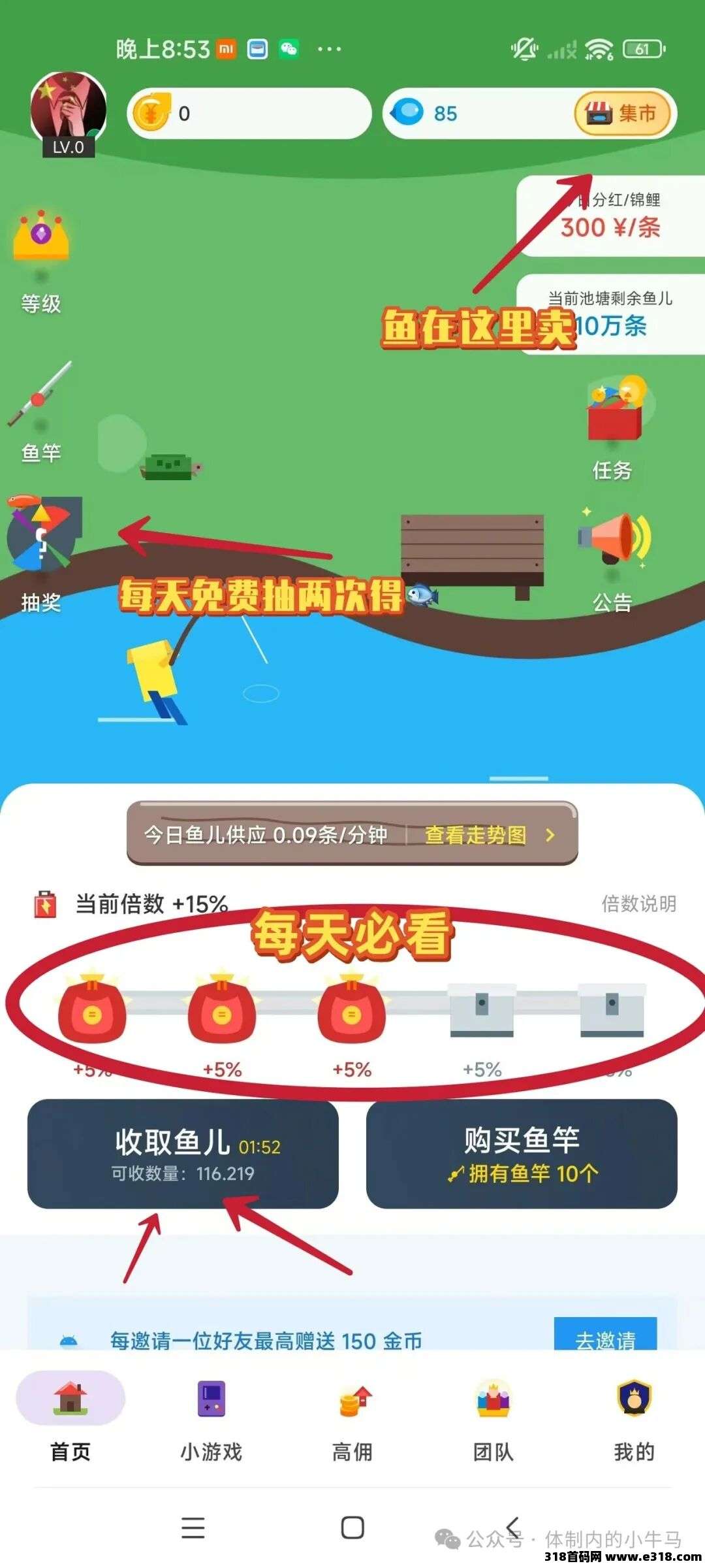 ⑤在钓鱼底下有个加速钓鱼,5个广告,可获取最好%25的速率