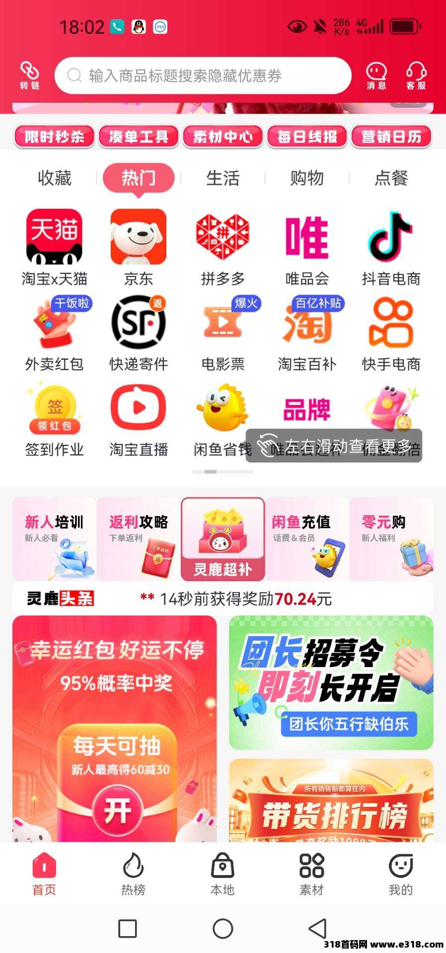 灵鹿宝盒是一款聚合全网优惠券的返利型导购应用,与淘宝、京东、拼多多、抖音、快手、唯品会、美团、饿了么等头部平台官方对接。用户通过它跳转到这些平台下单,可自动领取隐藏券,并在收货后获得额外现金返利,随时可提现至支付宝,真正实现“每笔订单都省一点”