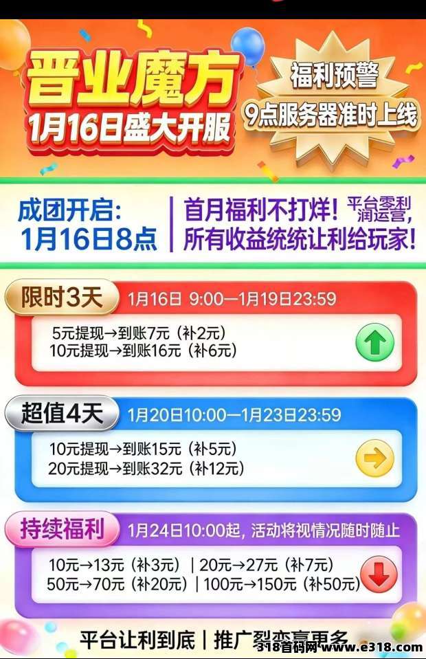 首码晋业魔方,零撸广告赚,诚招团长,最高扶持188.88米,不养机保底收益高,全天大放水,邀请日入百米,单机每天30-50+,免费提供不养机玩法教程,扶持拉满,待遇置顶!