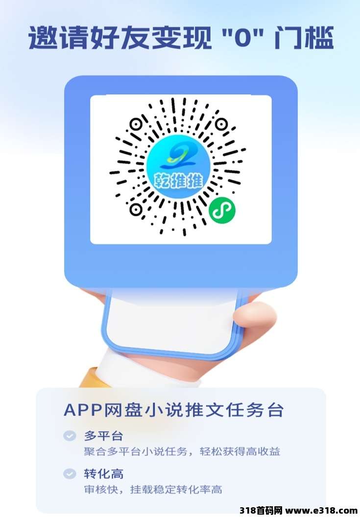 其次是低门槛零投入,和那些需要大额前期资金的项目不一样,乾推推官网邀请码6OC1P5,乾推推网盘拉新几乎没成本 ,乾推推人人免费注册就可以推广,不需要任何投入的项目。
