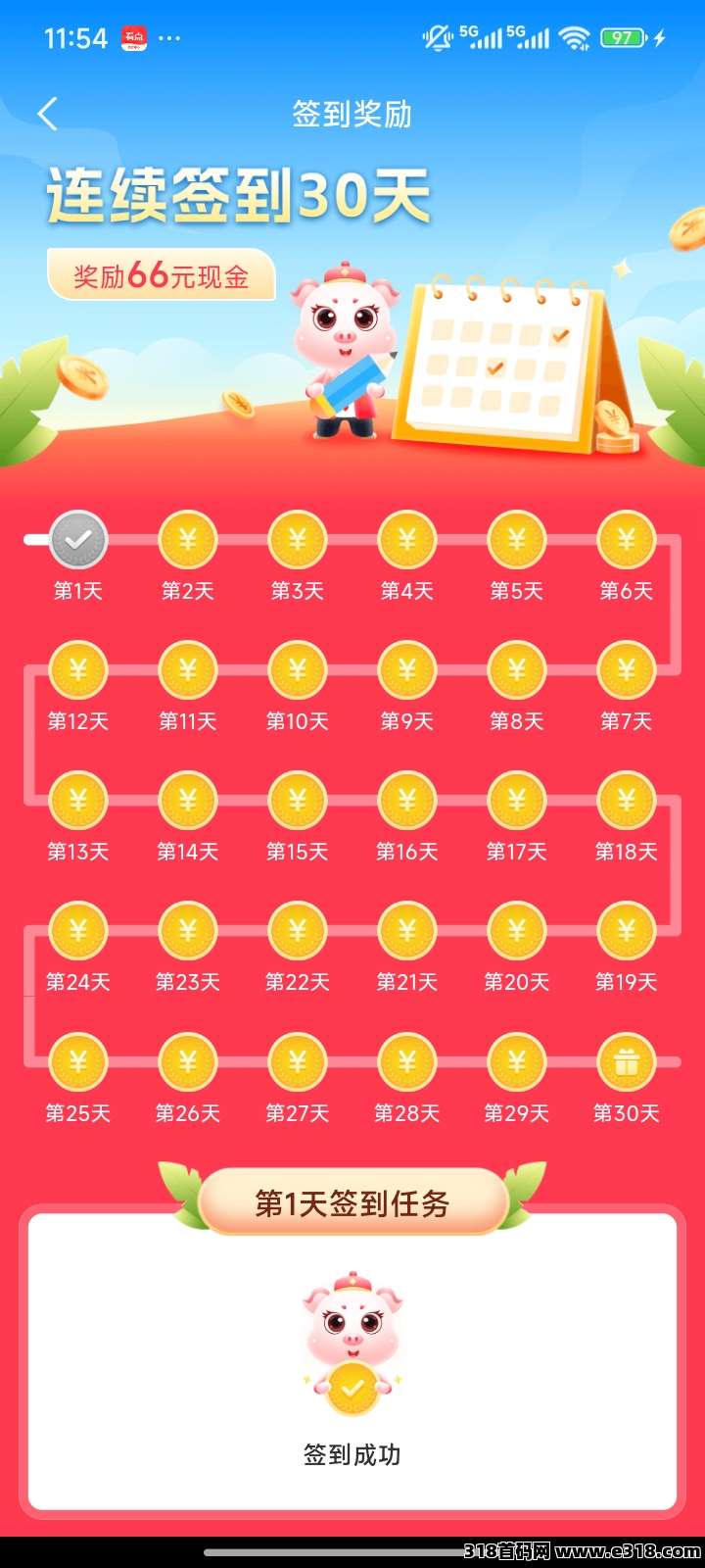 赚赚帮纯零撸 签到30天送66元 无门槛提现 速度来噜