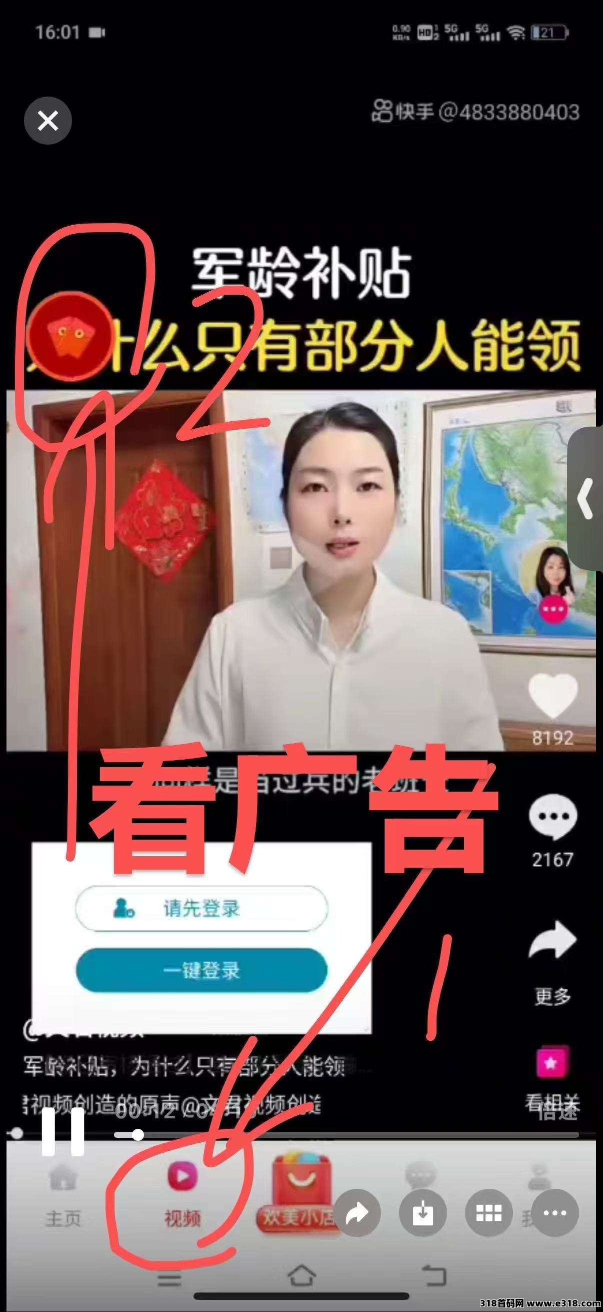 登录后点视频—左上角红包处看广告,点消息—进入官方群,祝大家发财!!Q群:1076762839