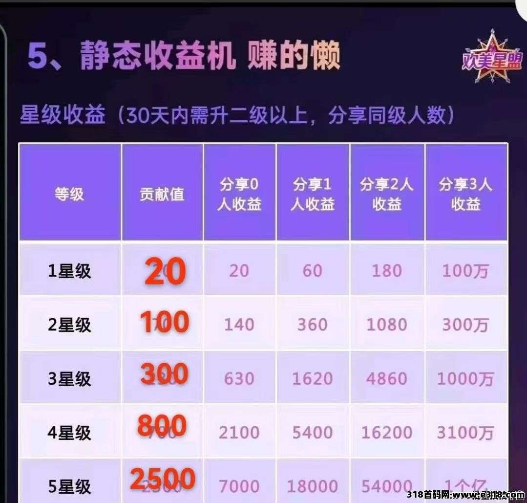 欢美生活2026即将火爆首码,普通人翻身改命的机会,1,看广告每天10—30元,通过零撸升级一星,可解锁209万,2,直推3人升为组长,直推3个组长升为团长,团长20层网体可赚1500万,自带社群聊天功能,