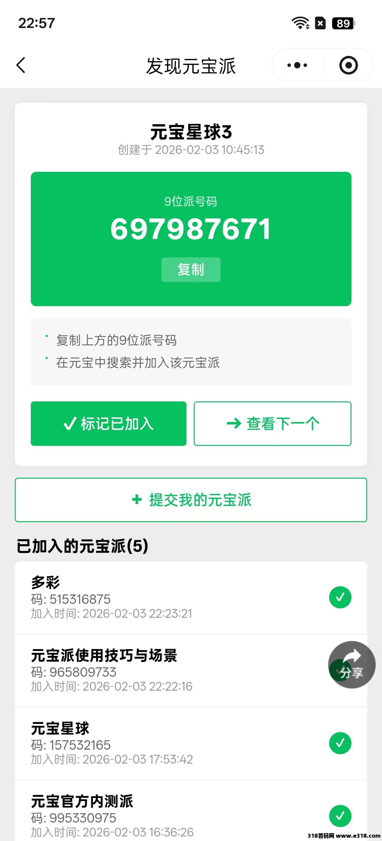 可以加派,也可以发布你的派让别人加入
