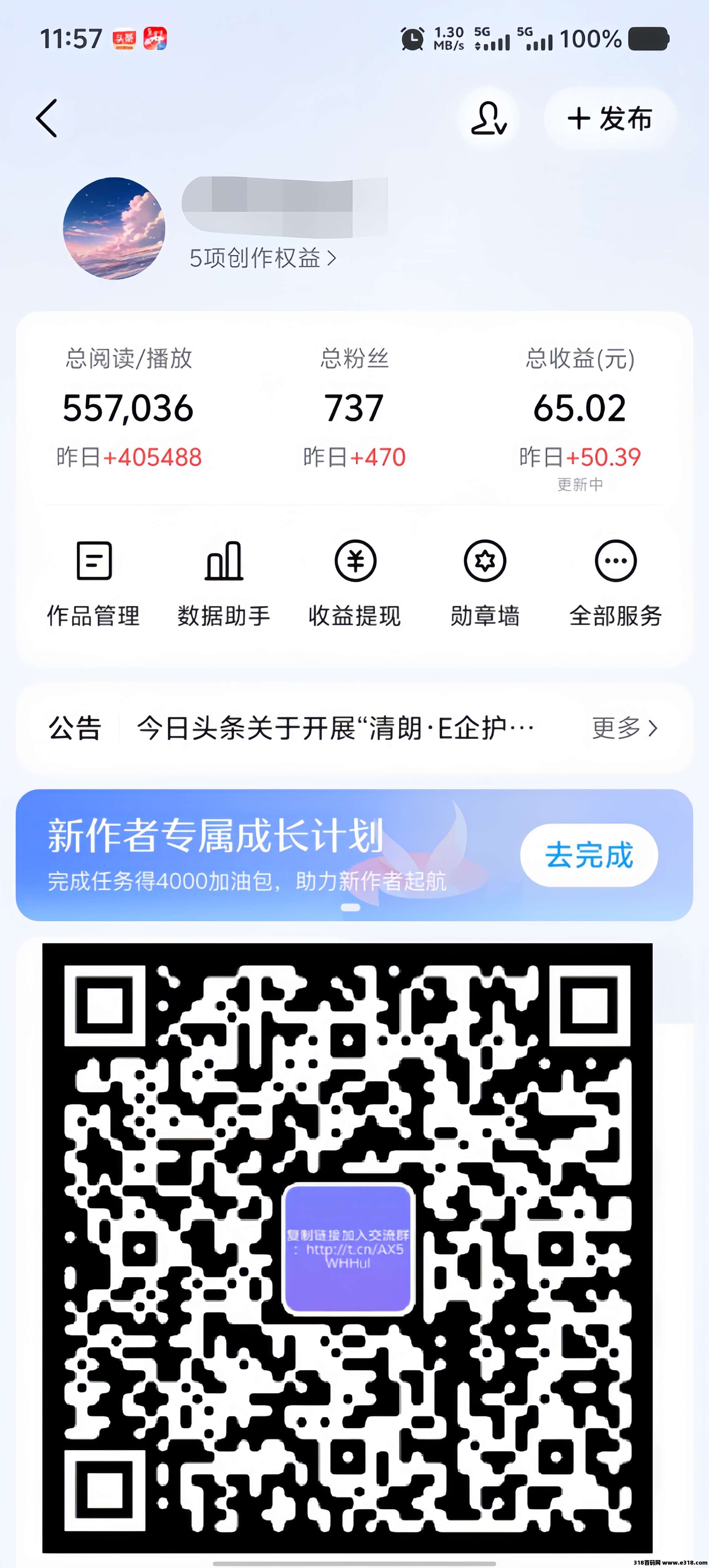 今日头条项目,你先拿收益后分成,合作模式,团队无线代平1级,年前后最强零撸。
