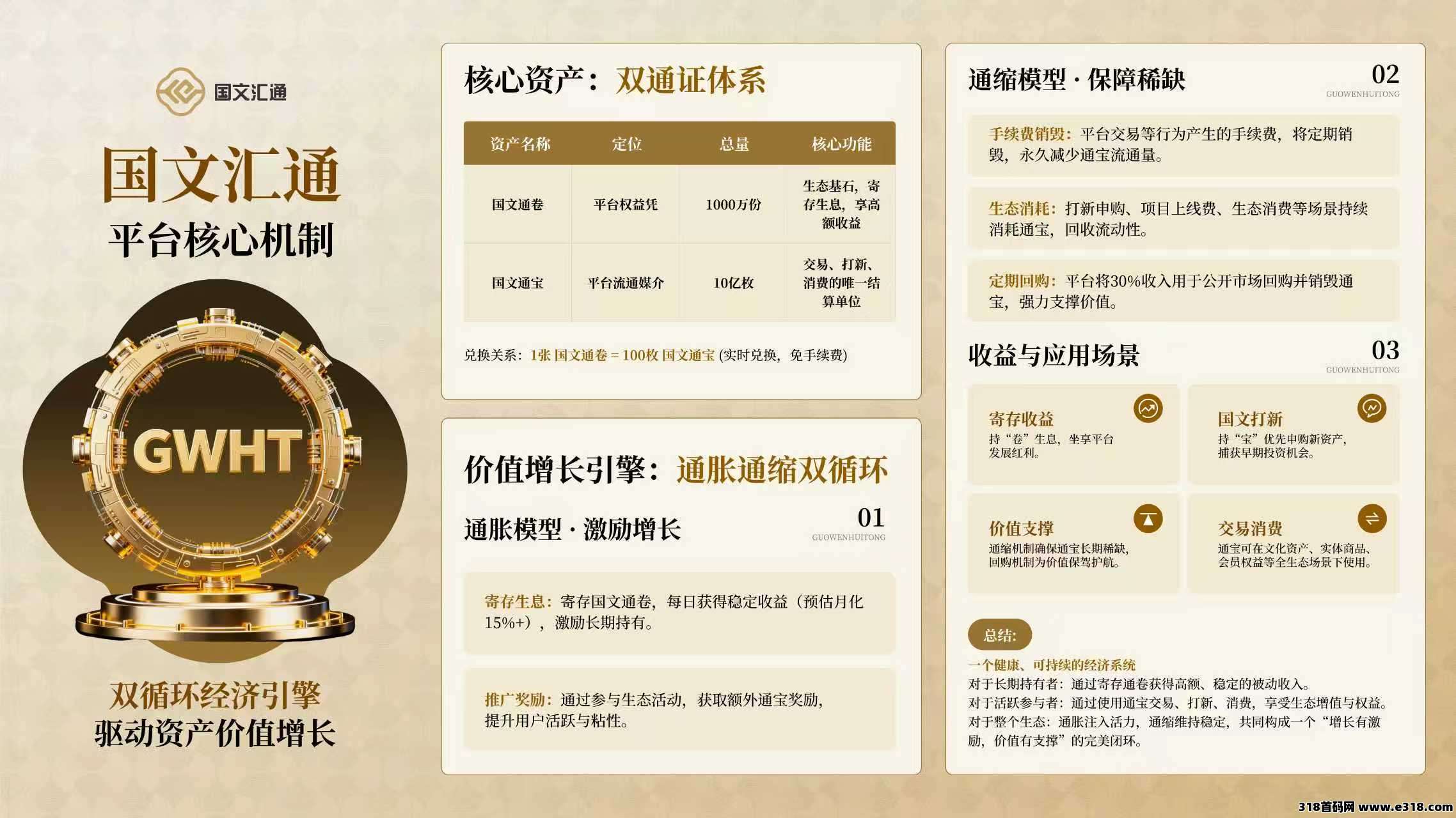 1:双资产体系:国文通卷(权益凭证,总量1000万)+ 国文通宝(流通媒介,总量10亿)