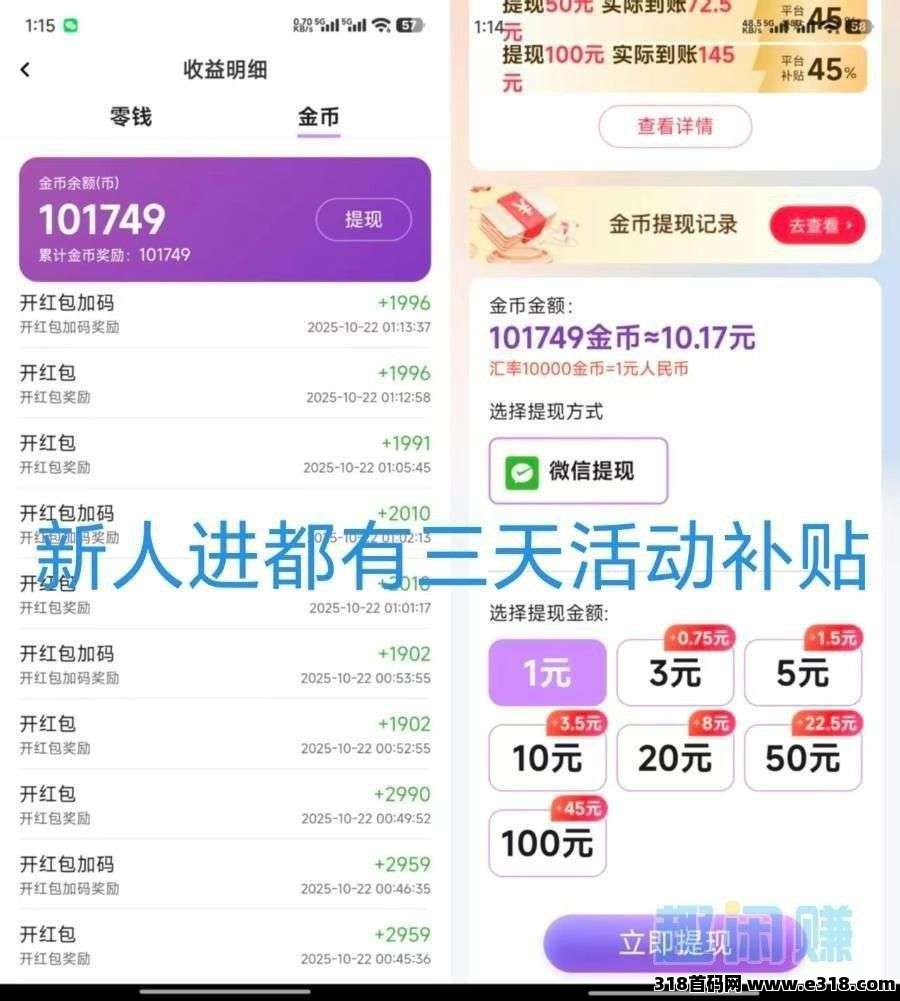 金币满0.3即可提,秒到