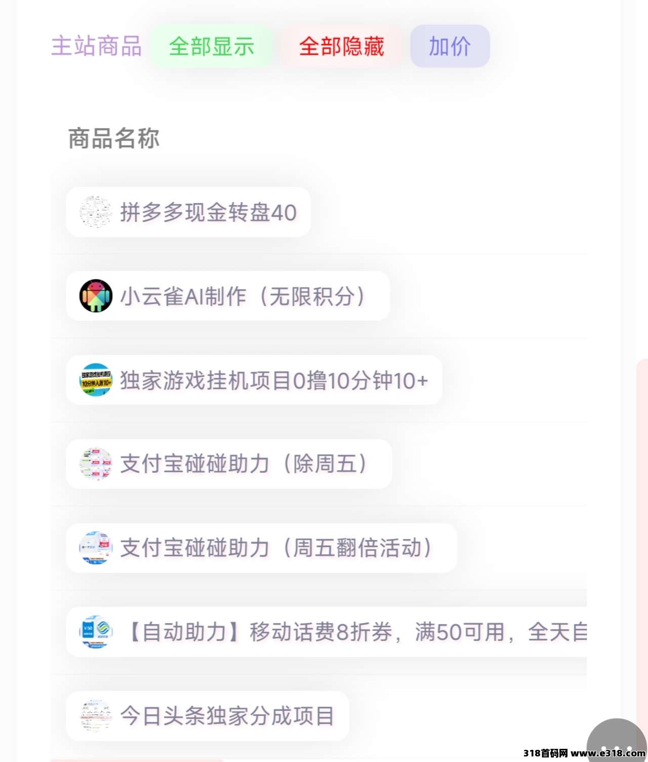 成为代理后:所有项目资源源头价格拿货!