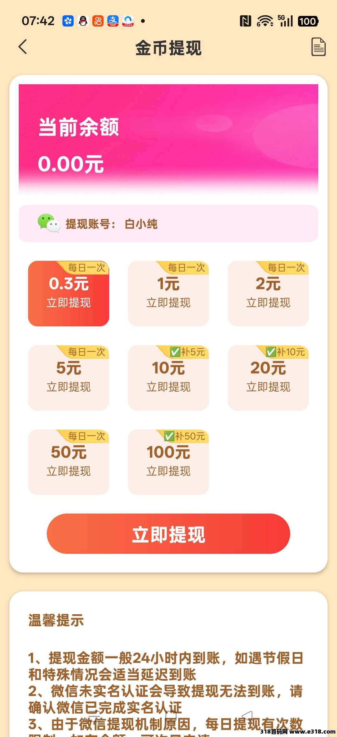 满0.3元即可到账