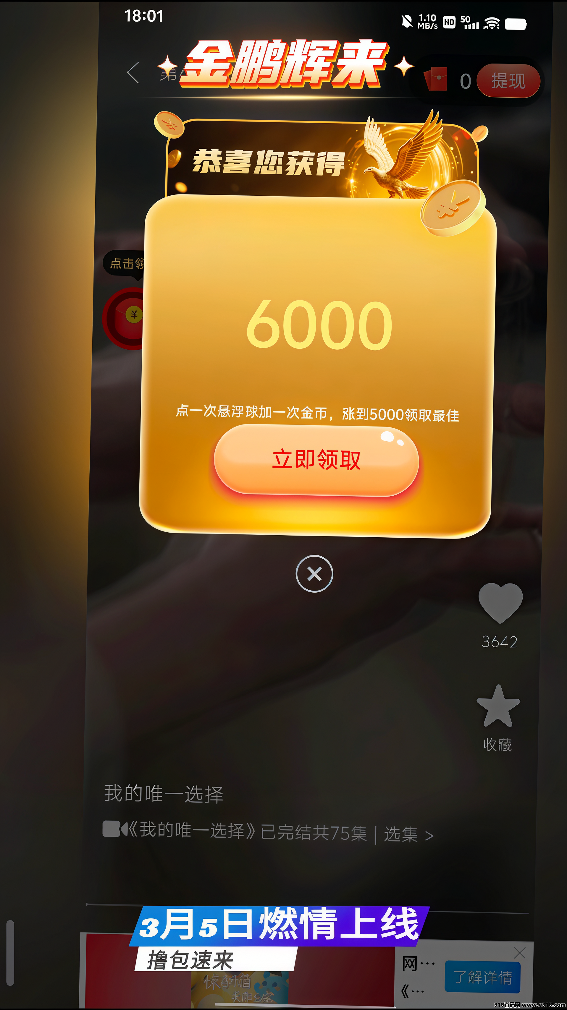 6000金币顶包再领,切记不要点提高奖励,一直点那个小悬浮球或者一直点红包然后叉掉金币就会一直涨 ,6000金币就是六毛!