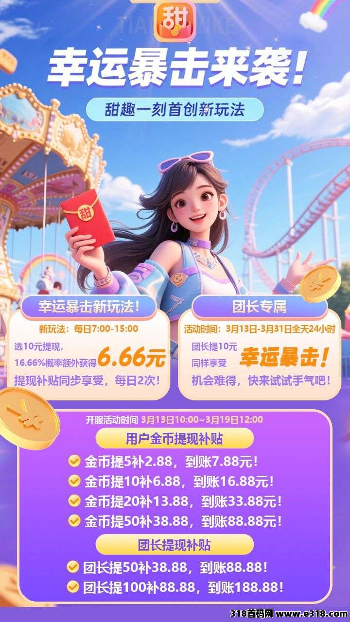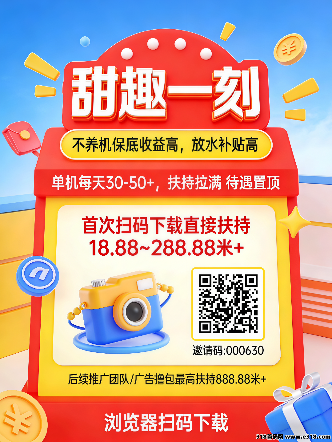 首码甜趣一刻,首次扫码下载即享高额扶持,零撸看广告,不养机保底收益高,放水补贴高,单机每天30-50+,免费提供不养机玩法教程,扶持拉满,待遇置顶!