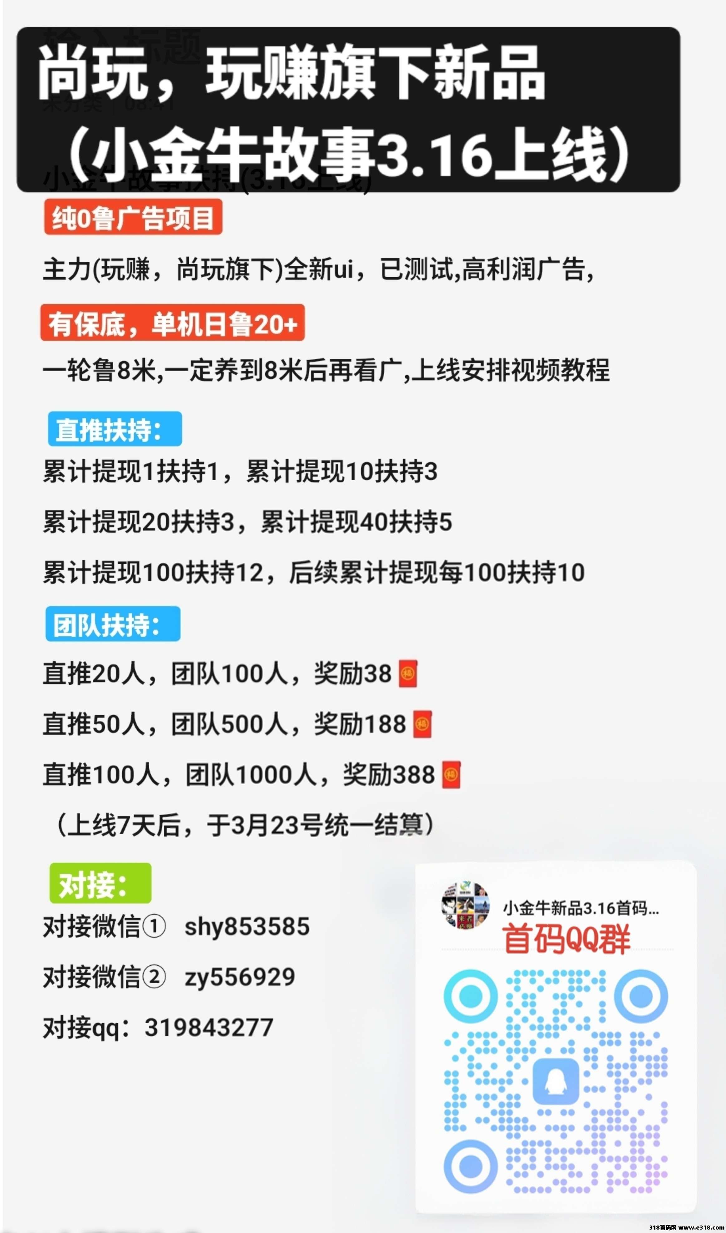 | 免责声明:合作之前建议签订合同,318首码网作为信息共享平台无法对信息的真实性及准确性做出判断,不承担任何财产损失和法律责任,若您不同意该提示,请关闭网页且不要在本站拓展任何合作,否则造成的任何损失由您个人承担。 | |