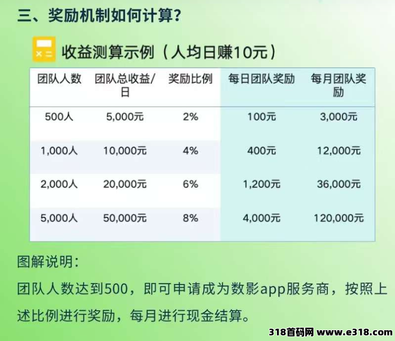 团队达到5000人,每人奖励0.8/天/人。