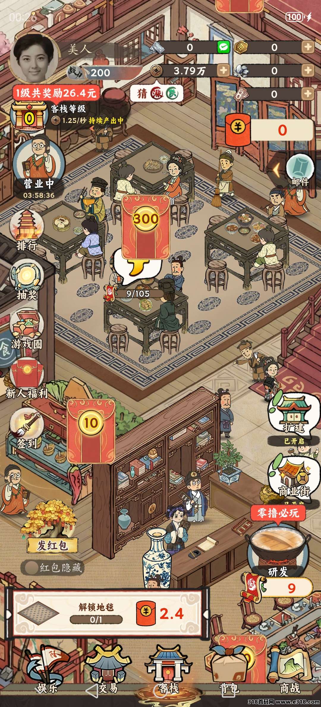 淘金城镇模式,去做菜,升级客栈,完成任务后领红包,还可抢红包,红包到手立即提现,很简单