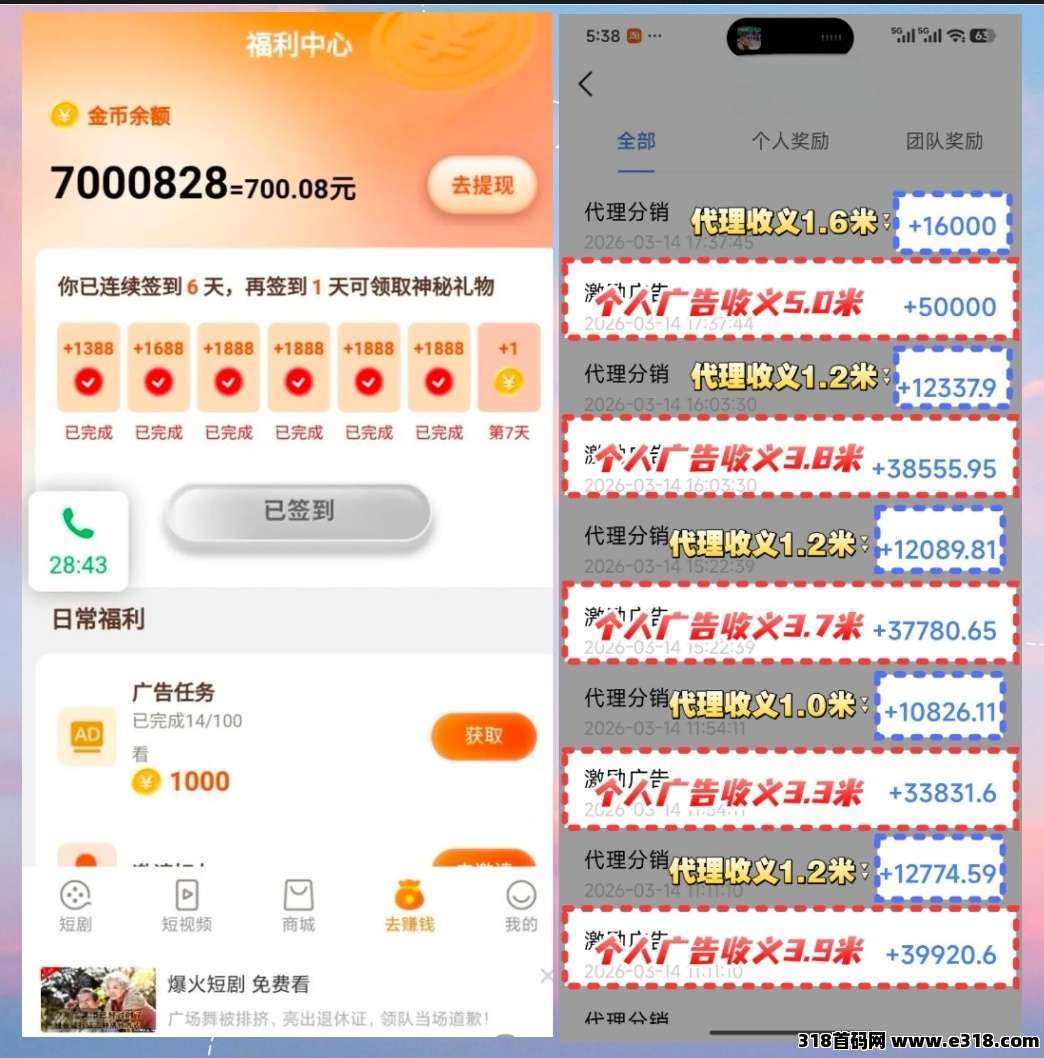 完全免费广告单价值高零撸单机轻松,月赚800~2000+副业收入,可矩阵多机操作