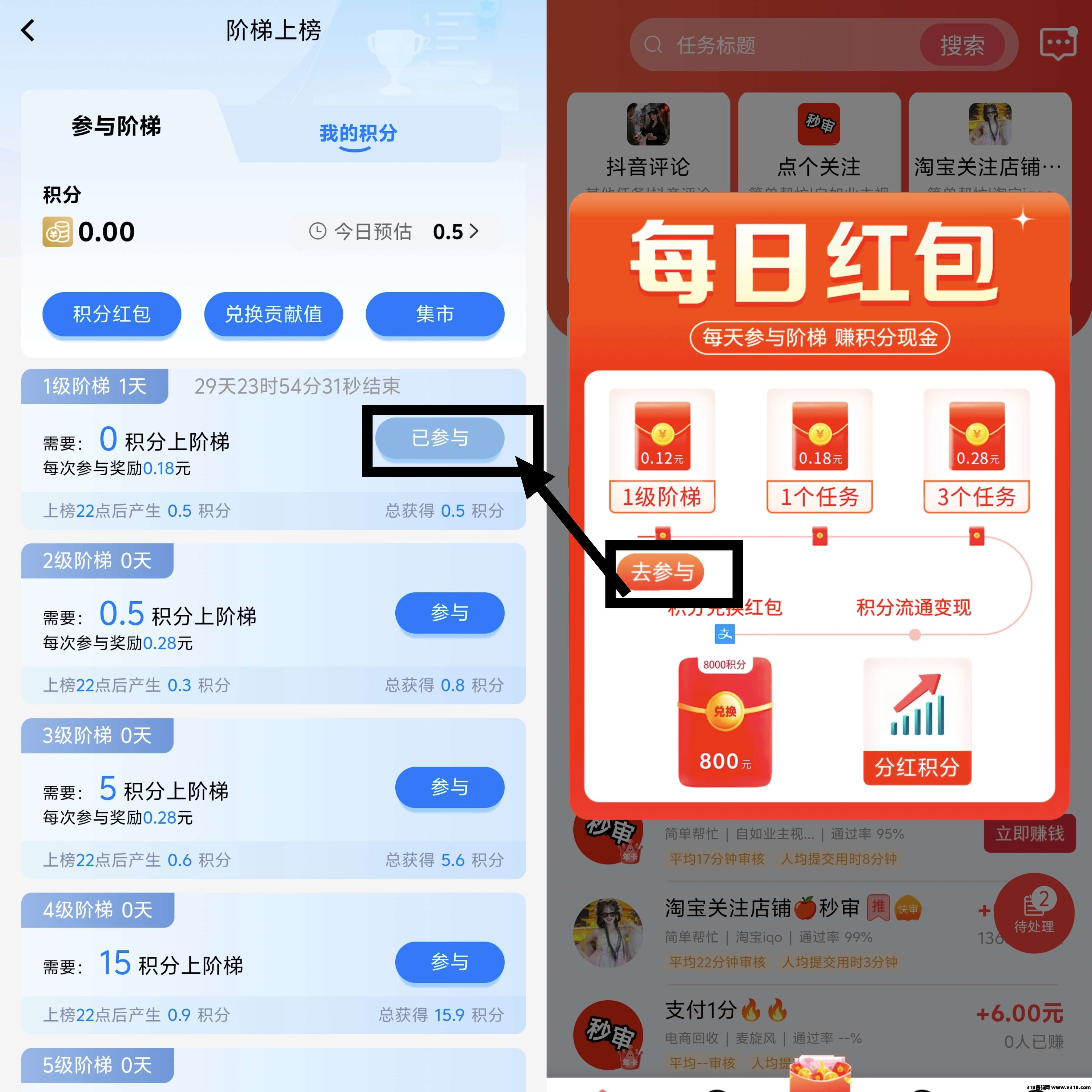 20人50积分,30人100积分,每邀请一人0.1~5米红包,满1起提,秒到