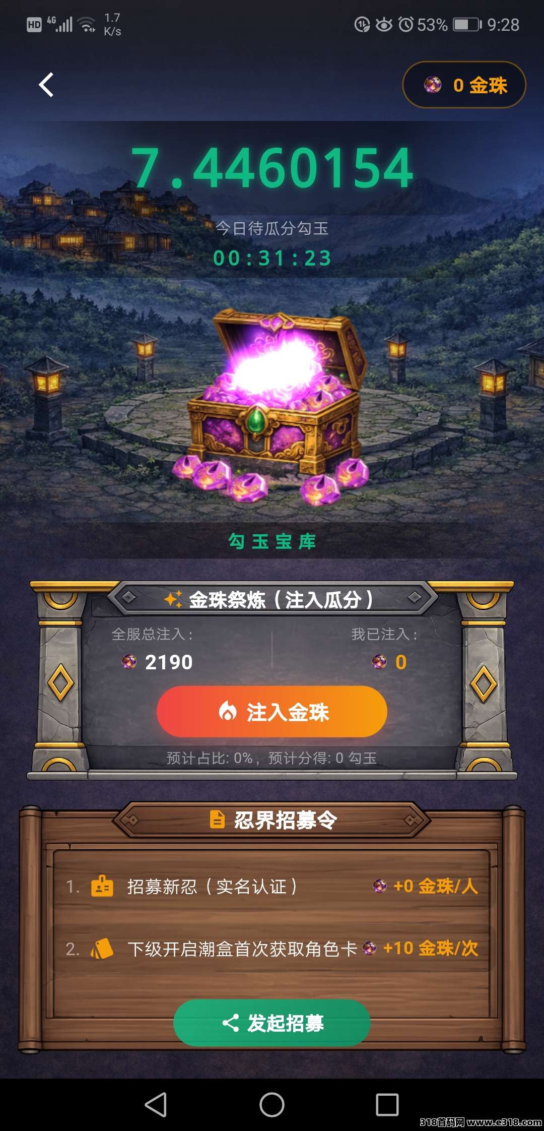 ②留出10玉,在复投个下忍箱子(赠22饭团),晚几天下车,一天收4玉,价值8米+,其余同上开始躺赚