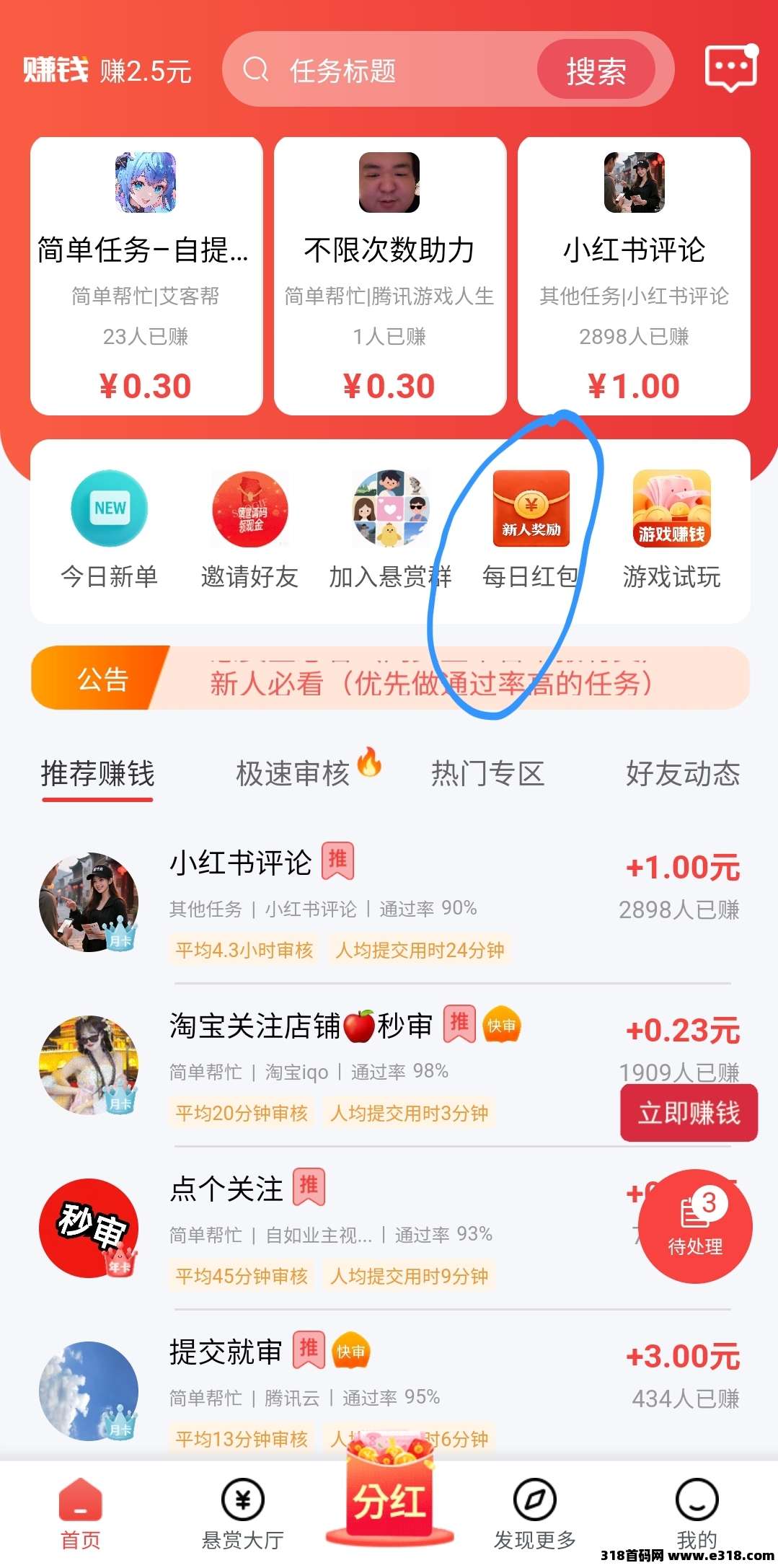 然后做单的也可以来这里试试,有很多高价秒过的单,这里悬赏主平均审核时间只有几分钟,可以来试试,完成这个新人奖励找我来领8元红包