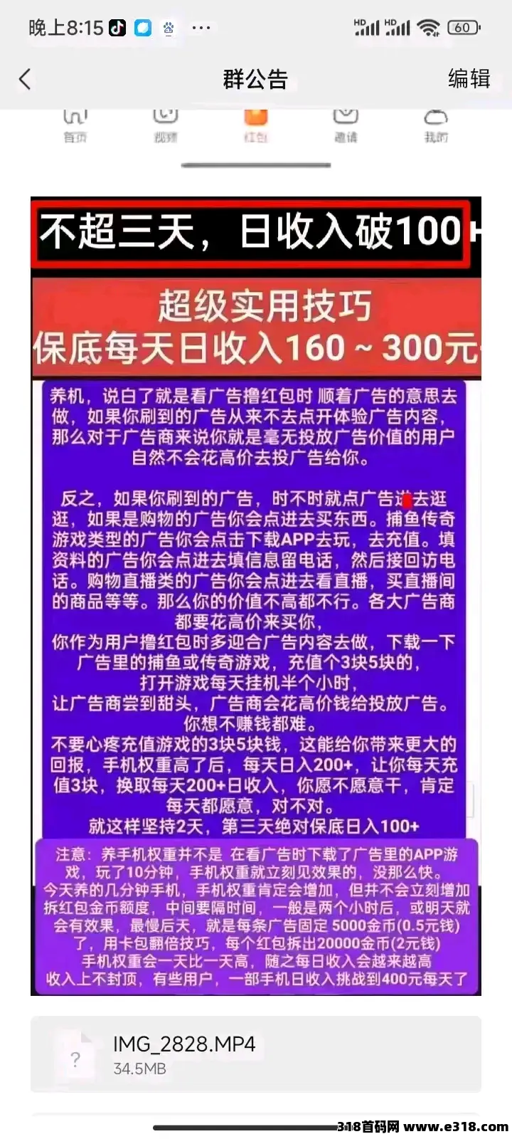 下图有养机教程,想要靠撸广告单手机日入破300的一定要看看