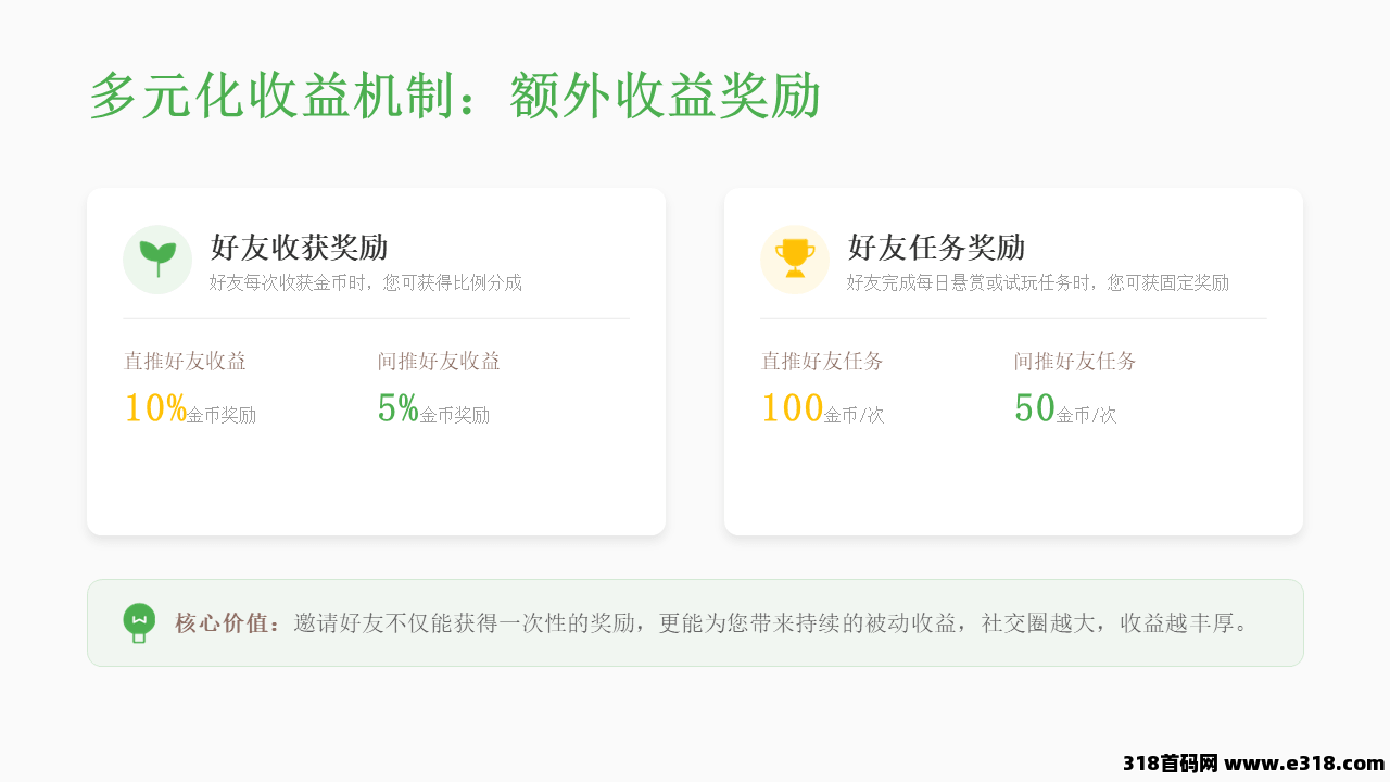 享受好友试玩/悬赏直推100,间推50金币