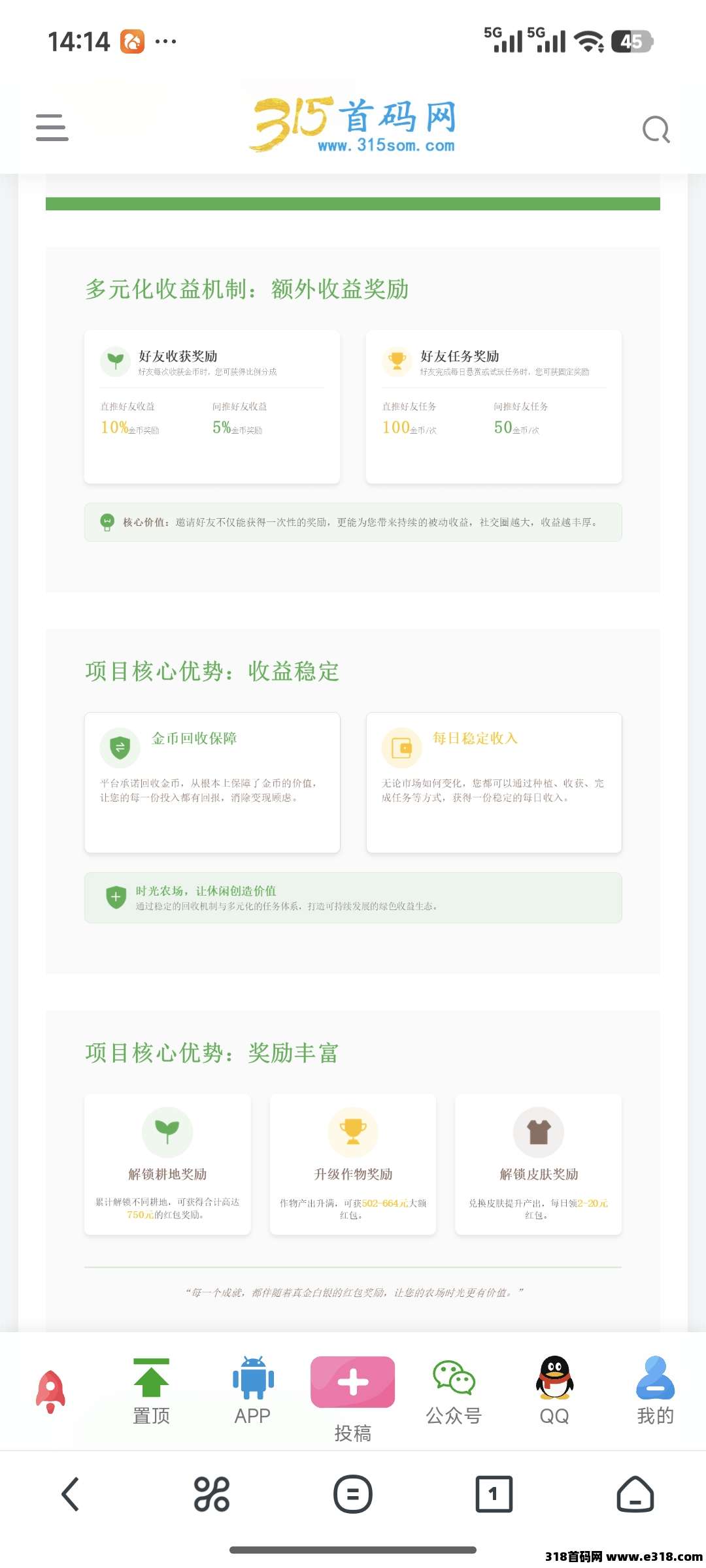 时光农场是一款模拟经营农场种植APP,玩家扮演农场主,开垦土地、购买种子播种,作物成熟后收获并卖出,用于扩张农场、换取道具等红包收益,时光农场还提供了多种有趣的玩法, 为玩家提供了投资和娱乐相结合的机会。通过多元化的玩法和实时提现的特色,吸引了众多玩家的关注。立即加入时光农场,体验经营农场的乐趣,获取丰厚的收益