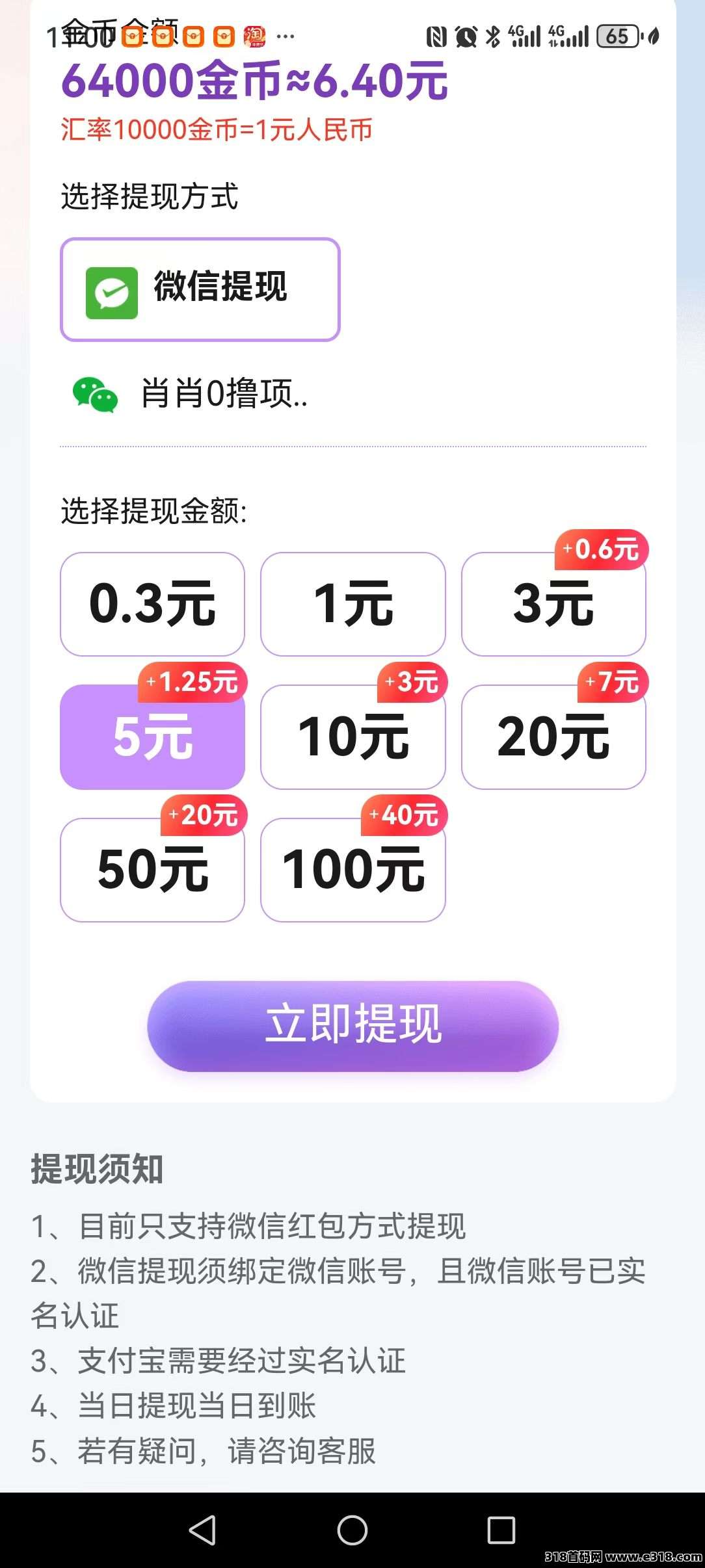 提5到账6.25