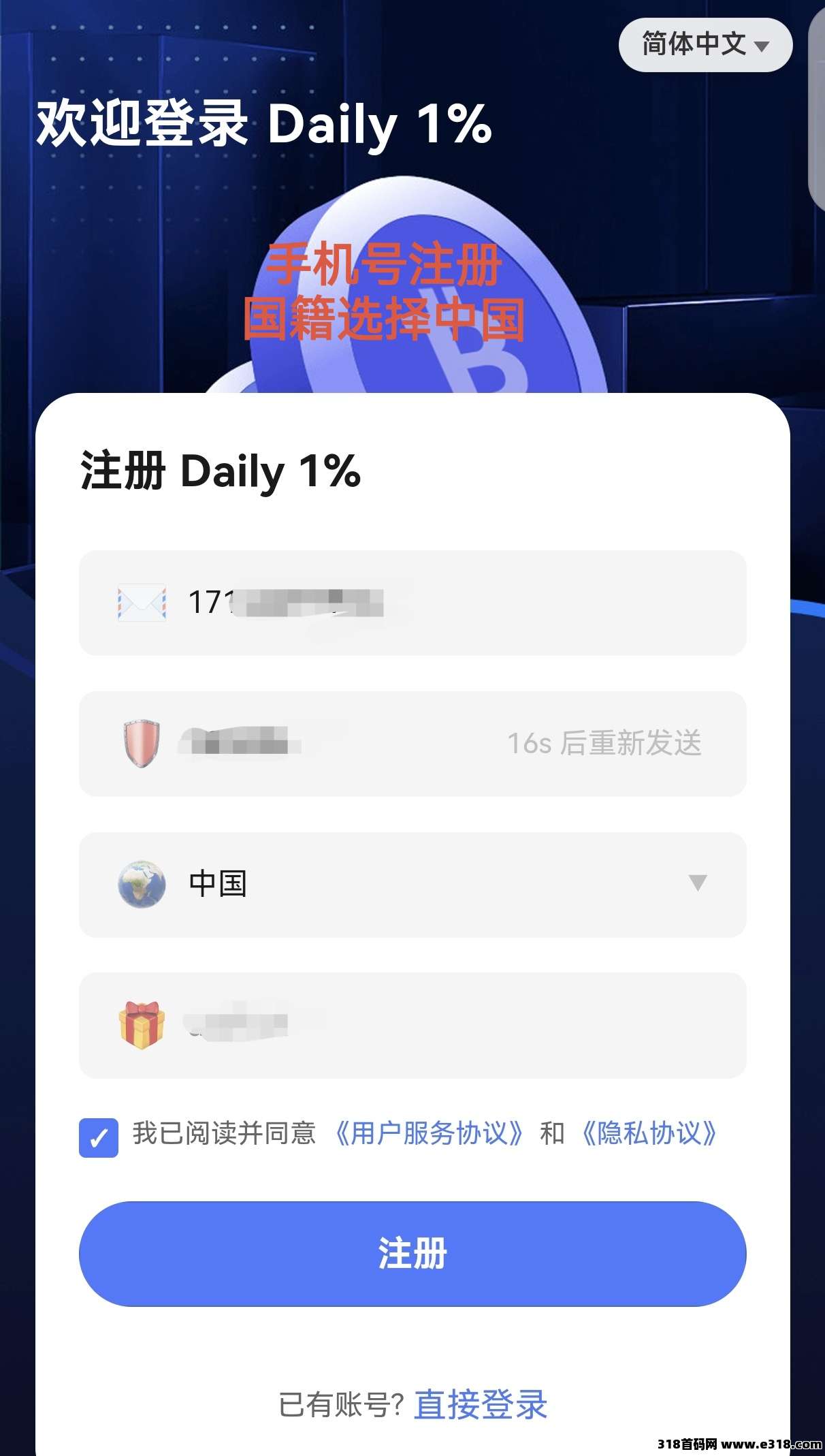 点击下方链接注册https://www.daliy1.io/#/pages/register/register?inviteCode=s662E7