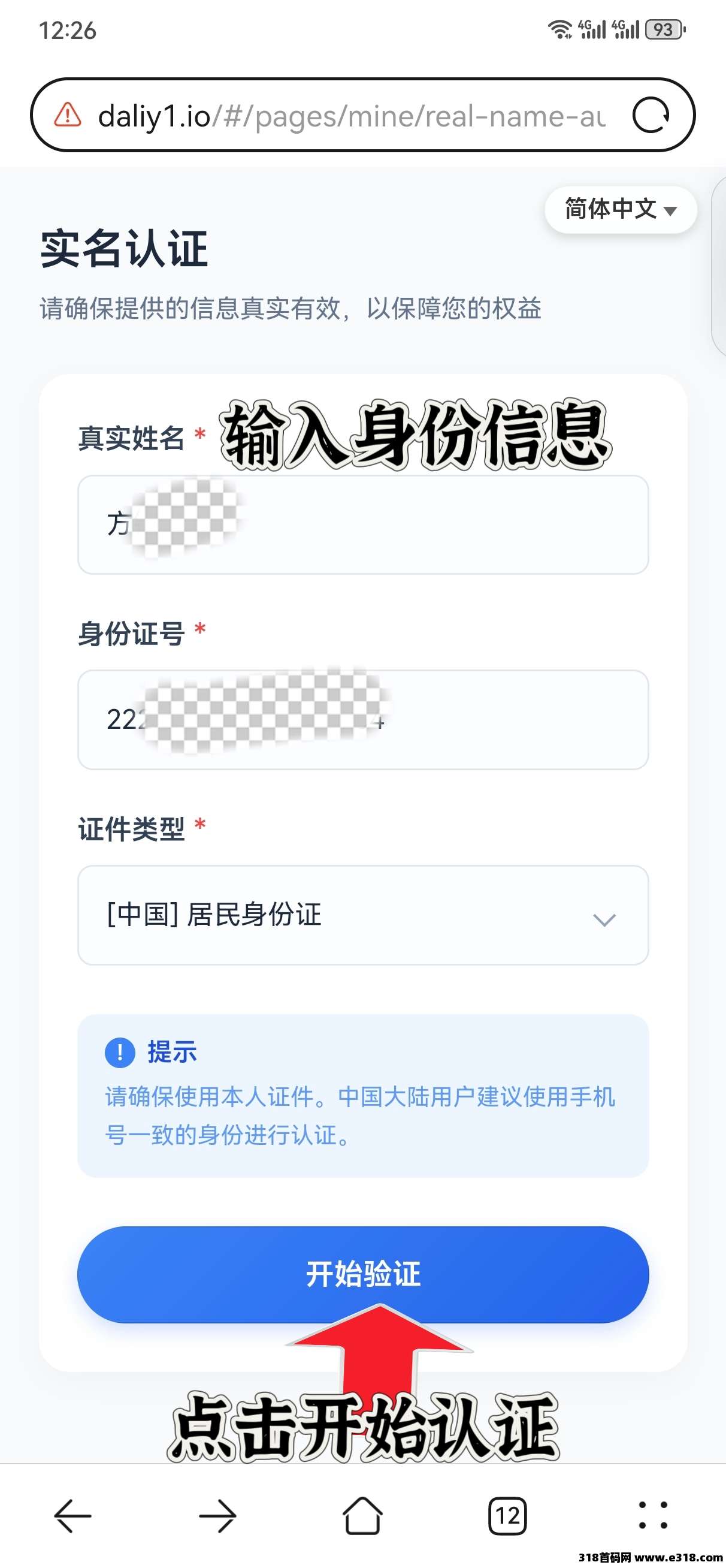 第三步:点击实名认证,进行实名认证。