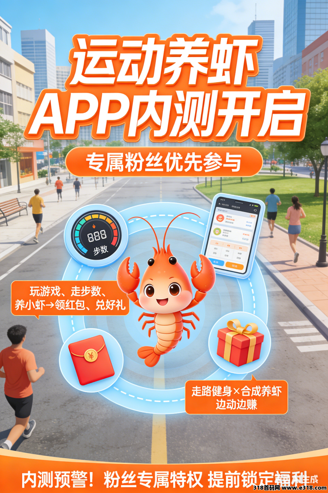 家人们!盼了好久的福利终于来啦🎉 咱们公司全新运动养虾APP,即将开启内测通道,专属粉丝优先参与,玩游戏、走步数、养小虾,就能额外领红包、兑好礼,零撸不套路,轻松赚零花钱!
