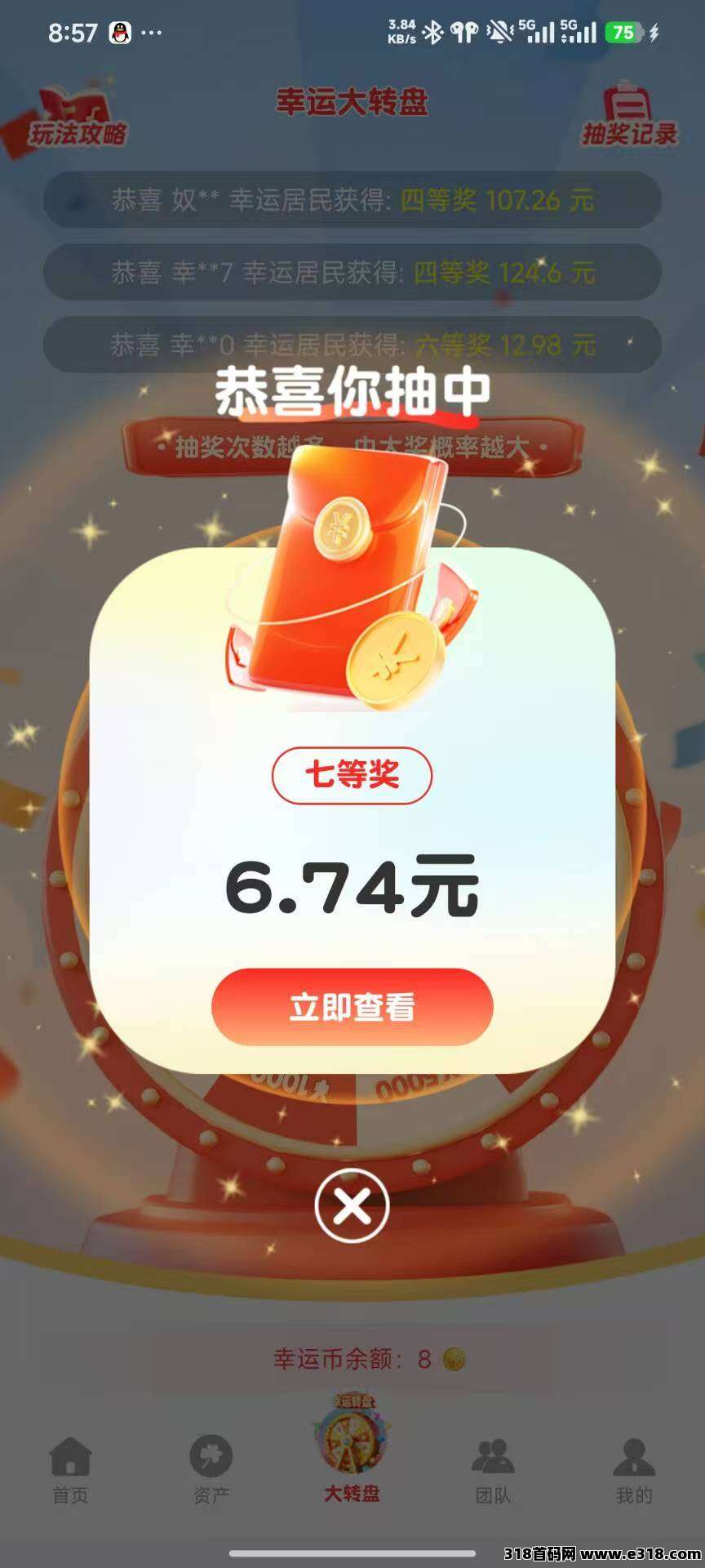 100幸运币可以抽取现金提现0.1-100之间,现在奖励高,可提现。
