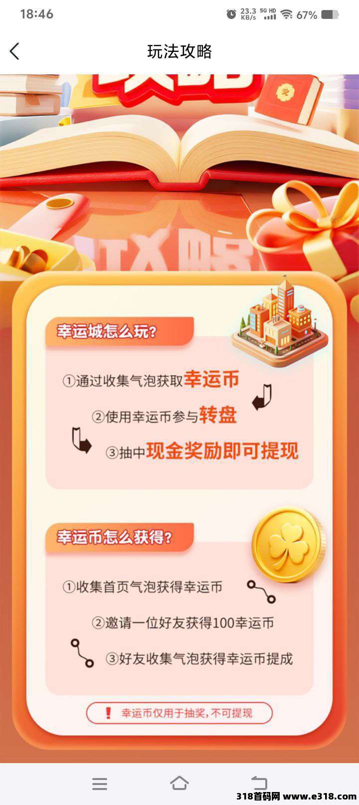 幸运城,零撸广告赚,保底收益高,不养机,看广告得幸运币