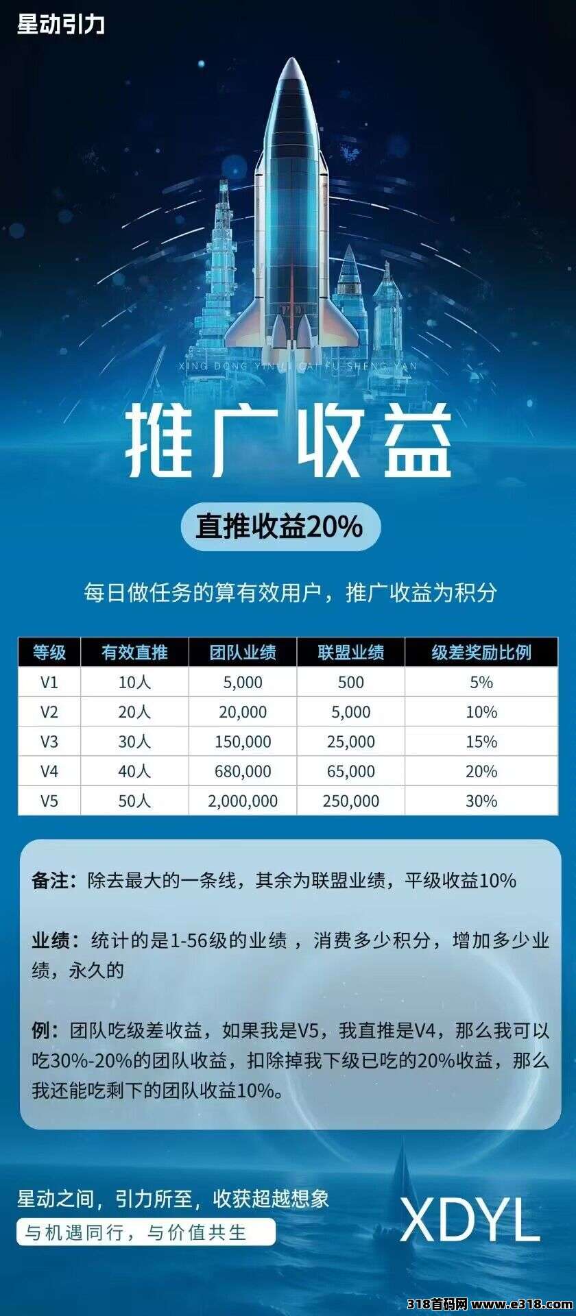 推广收益:只有直推20%+团队业绩代差5%-10%