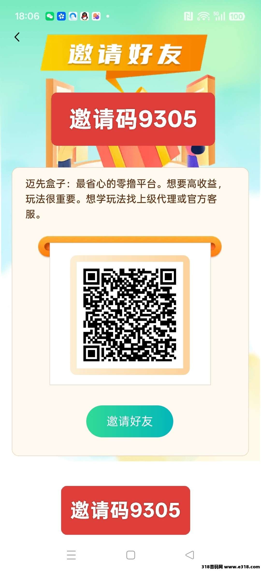 迈先盒子,零撸广告赚,保底收益高,团队模式,邀请日入几十米,新品上线。