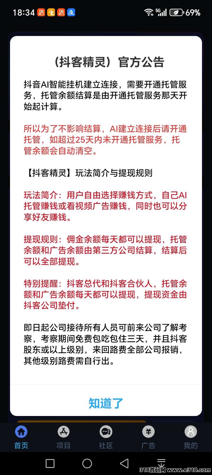 今天为大家拆解一个近期热门的轻资产副业项目——抖客精灵。它利用AI智能技术,通过托管服务和广告激励,帮助用户实现自动化的收益增长。