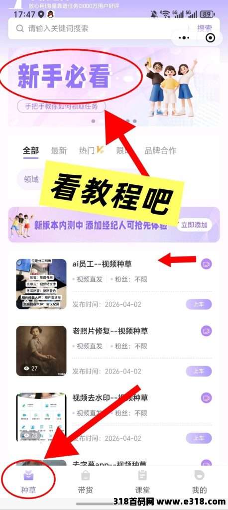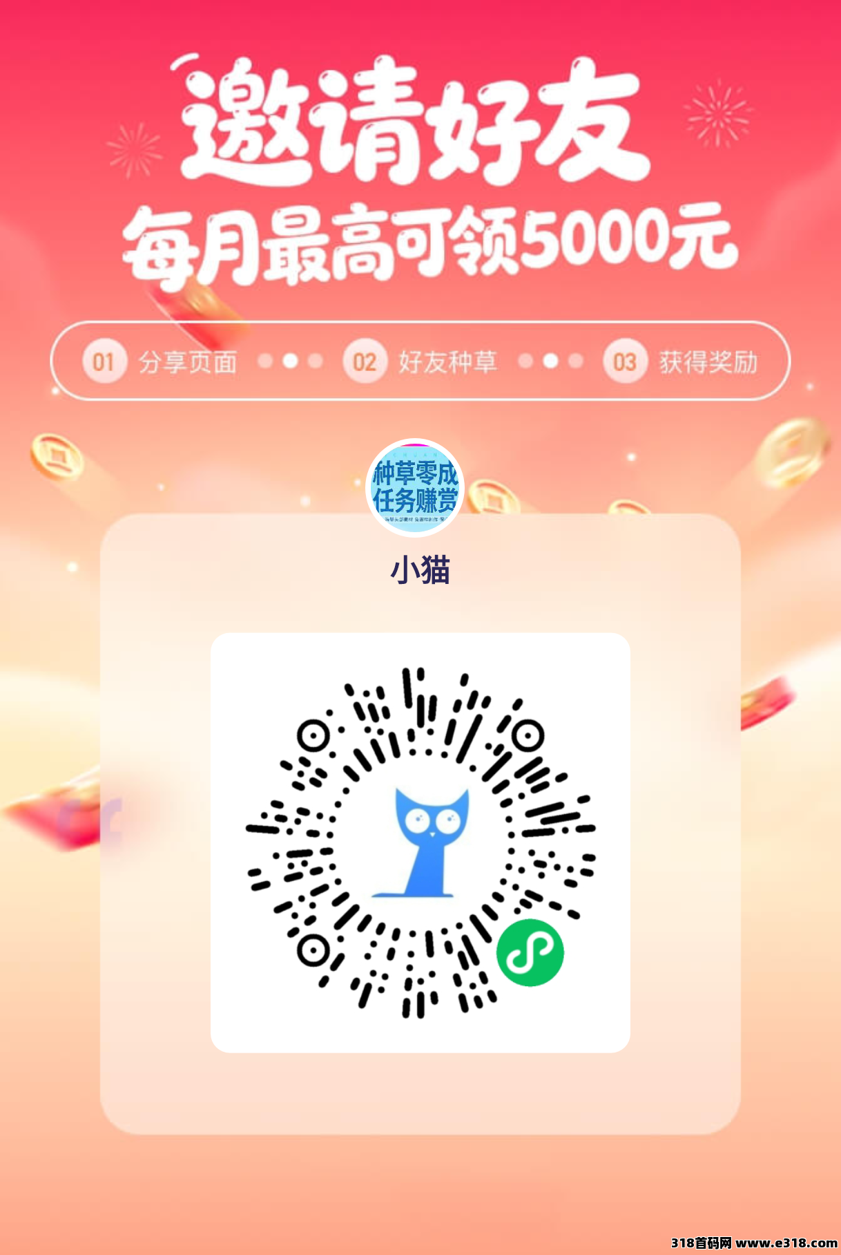 小猫种草首码上线,种草发视频代发,保底收益高,新品上线,团队模式,邀请日入几十米。