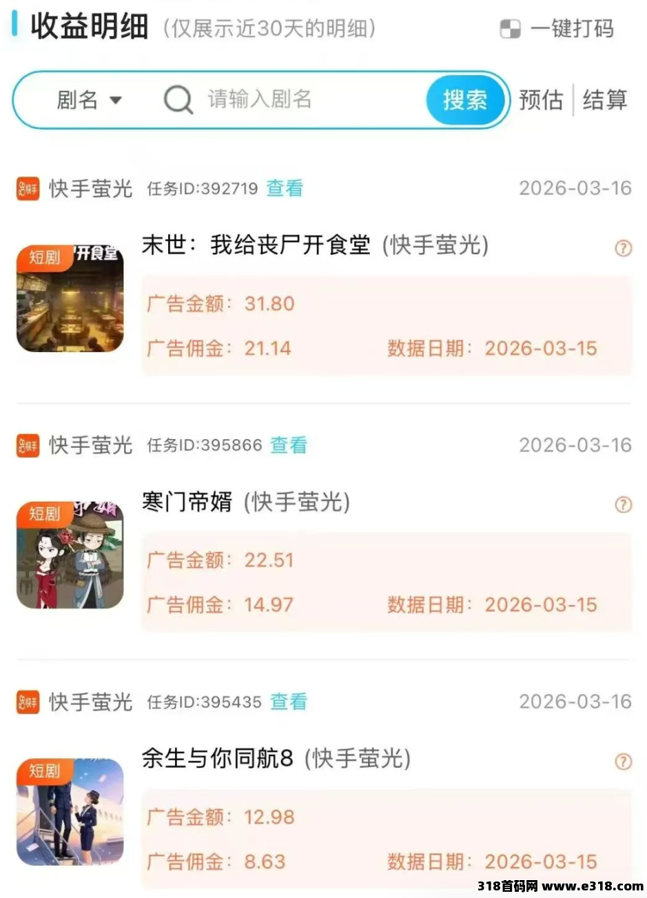 基本一部手机看短剧一天收益最少10左右(关键词:“最少”|具体看你养机能力),手机越多赚的就越多