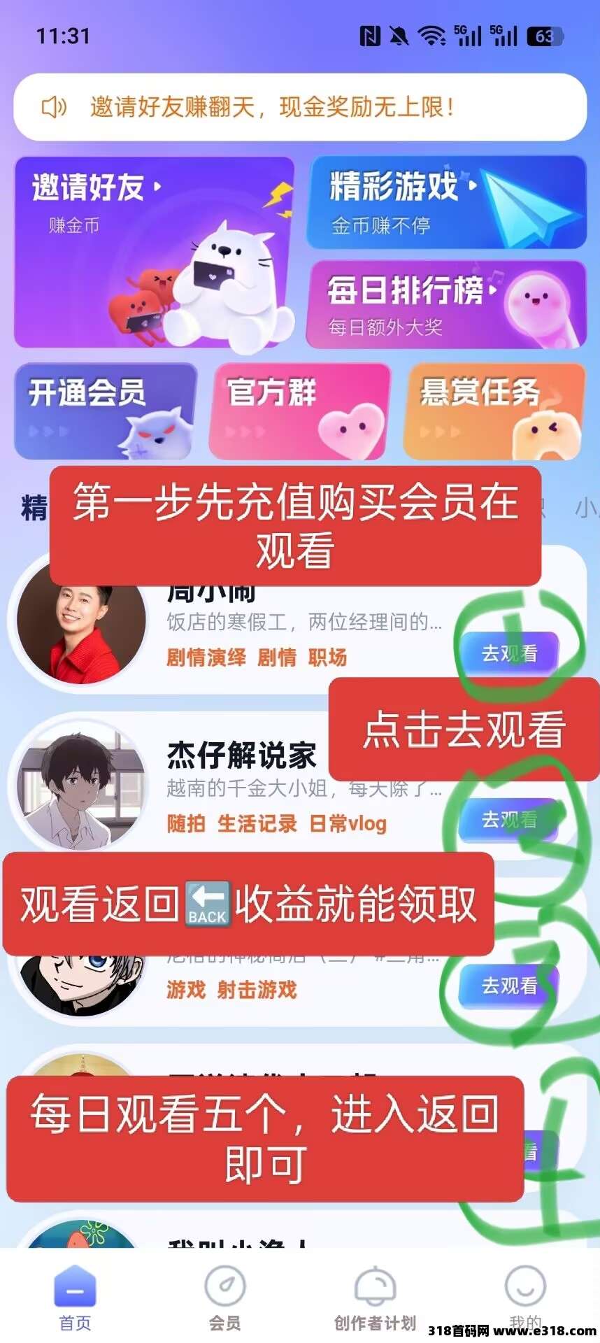 里面有创作者计划,有游戏,玩法如下↓每天10秒中完成
