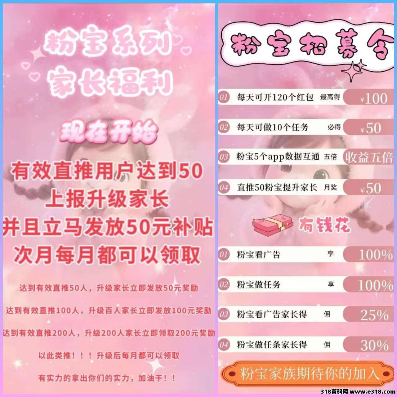 家长(直推15%,间推10%),任务(直推30%),家长任务平级无奖励,但是可以吃粉宝后代子孙10%奖励