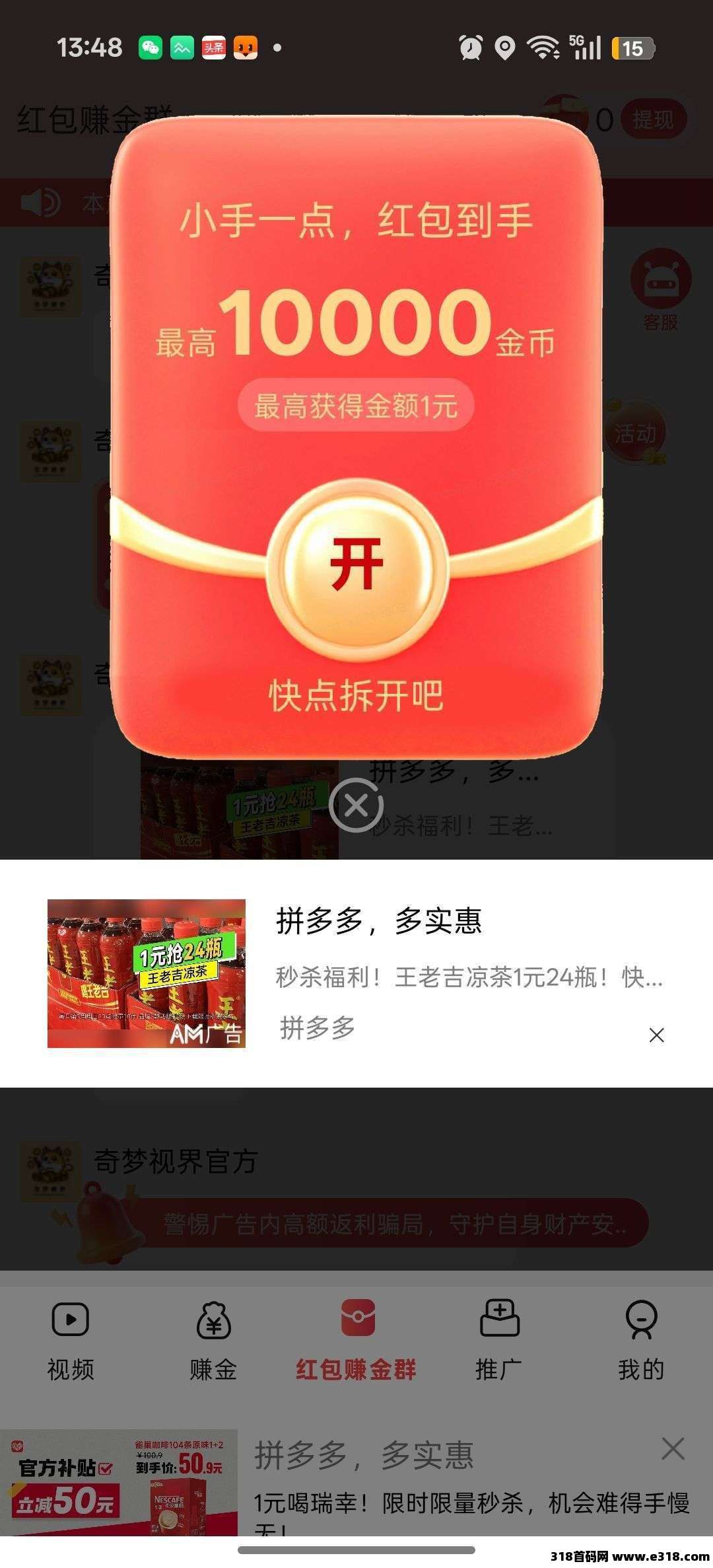 奇梦视界,零撸广告赚,保底收益高,放水中,团队模式,邀请日入几十米,拉新奖励,新品上线,活动补贴.收益翻倍