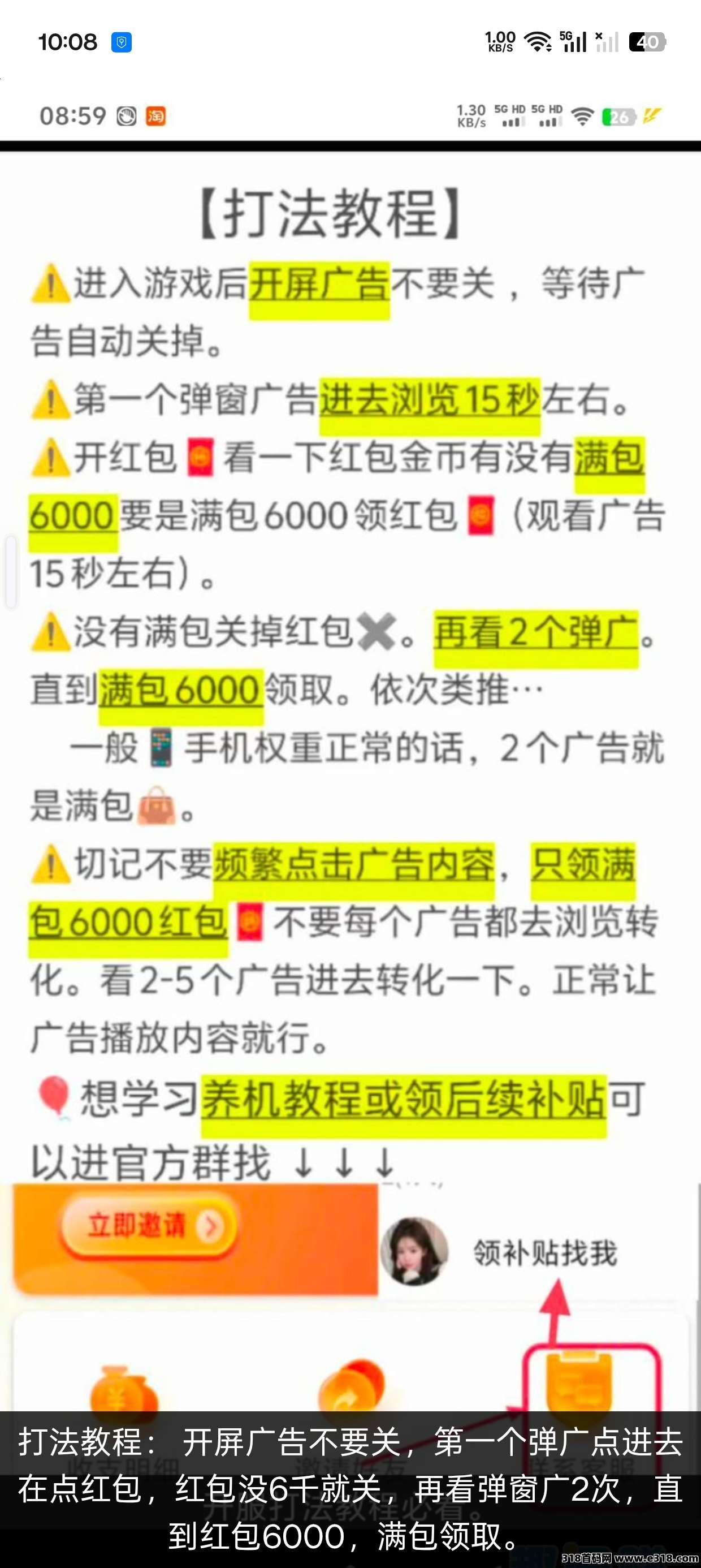 开屏广告不要关,第一个弹广点进去 在点红包,红包没6千就关,再看弹窗广2次,直到红包6000,满包领取。