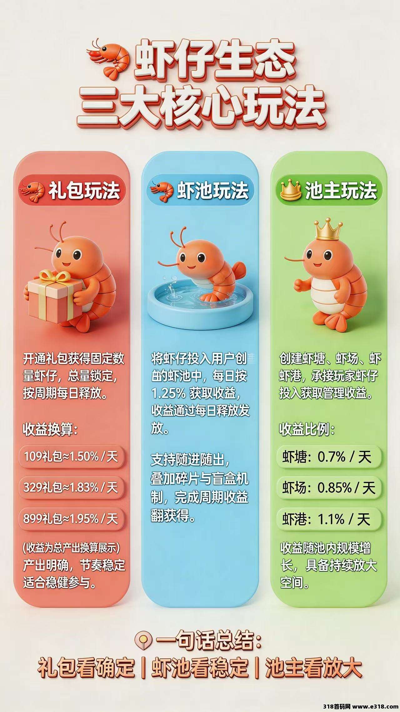 虾仔生态,是一套围绕资产流通、收益增长与价值放大构建的全新生态模型。