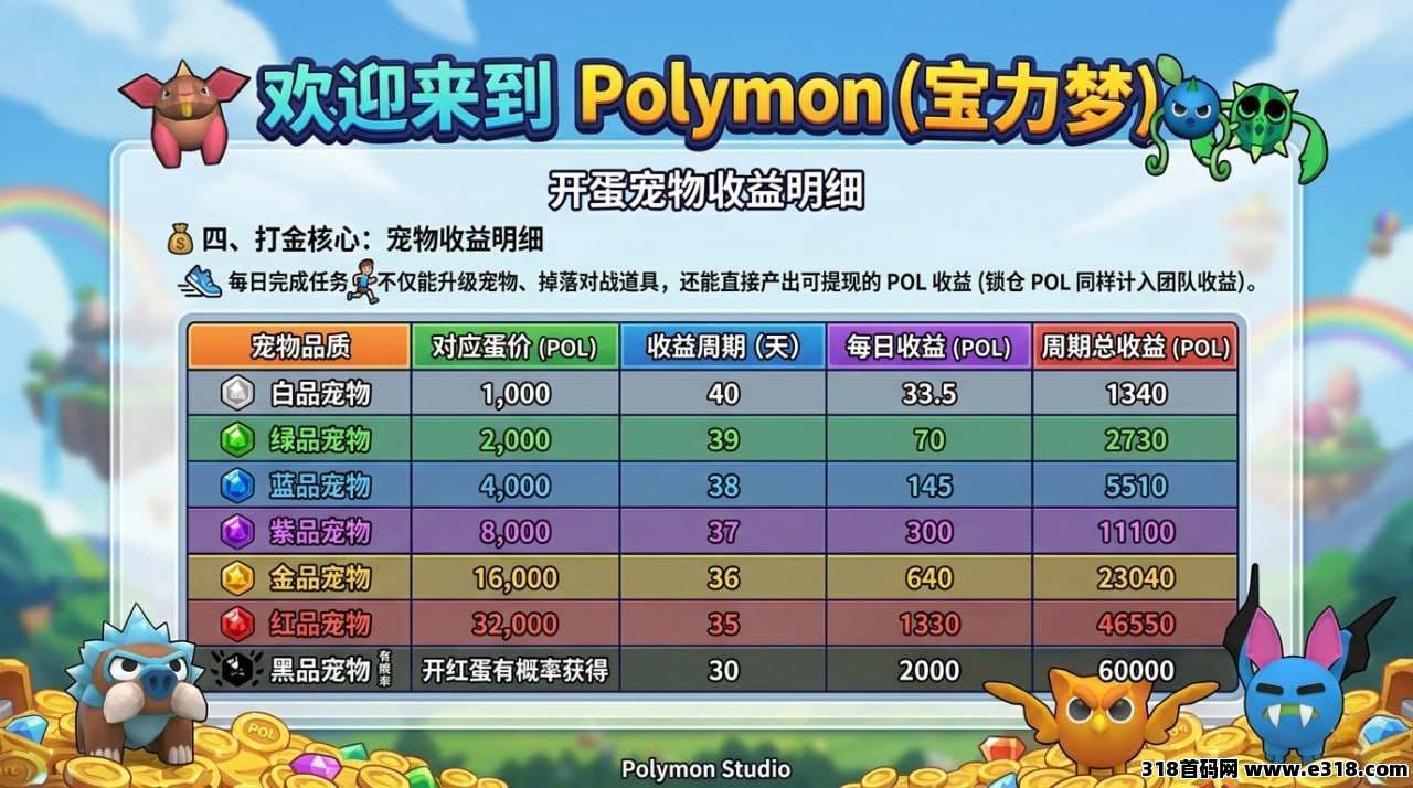 注册即送:价值 1000 POL 的宠物白蛋,最高可开出价值 4000 POL 的蓝品宠物