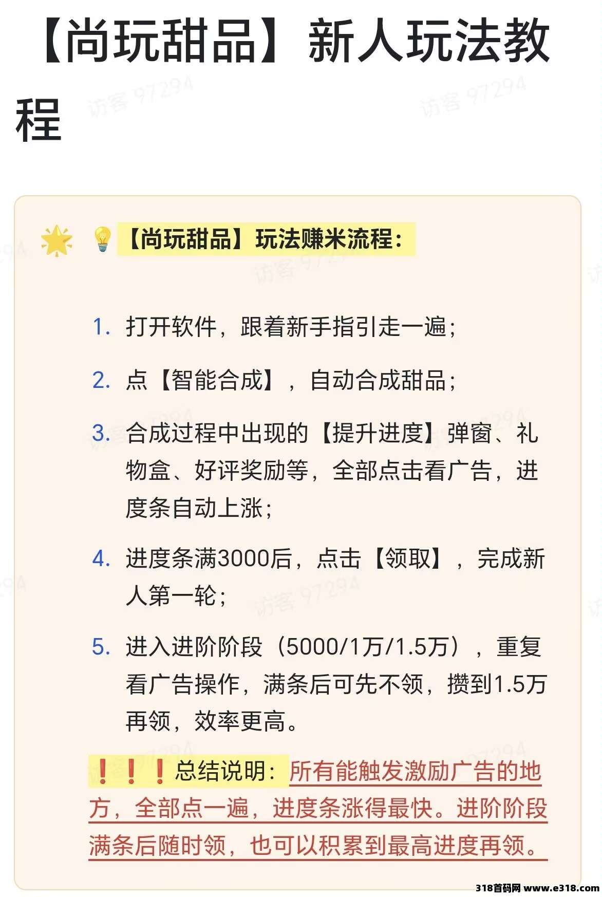 3。合成过程中出现的[提升进度]弹窗,礼物盒,好评奖励等,全部点击看广告,进度条自动上涨;
