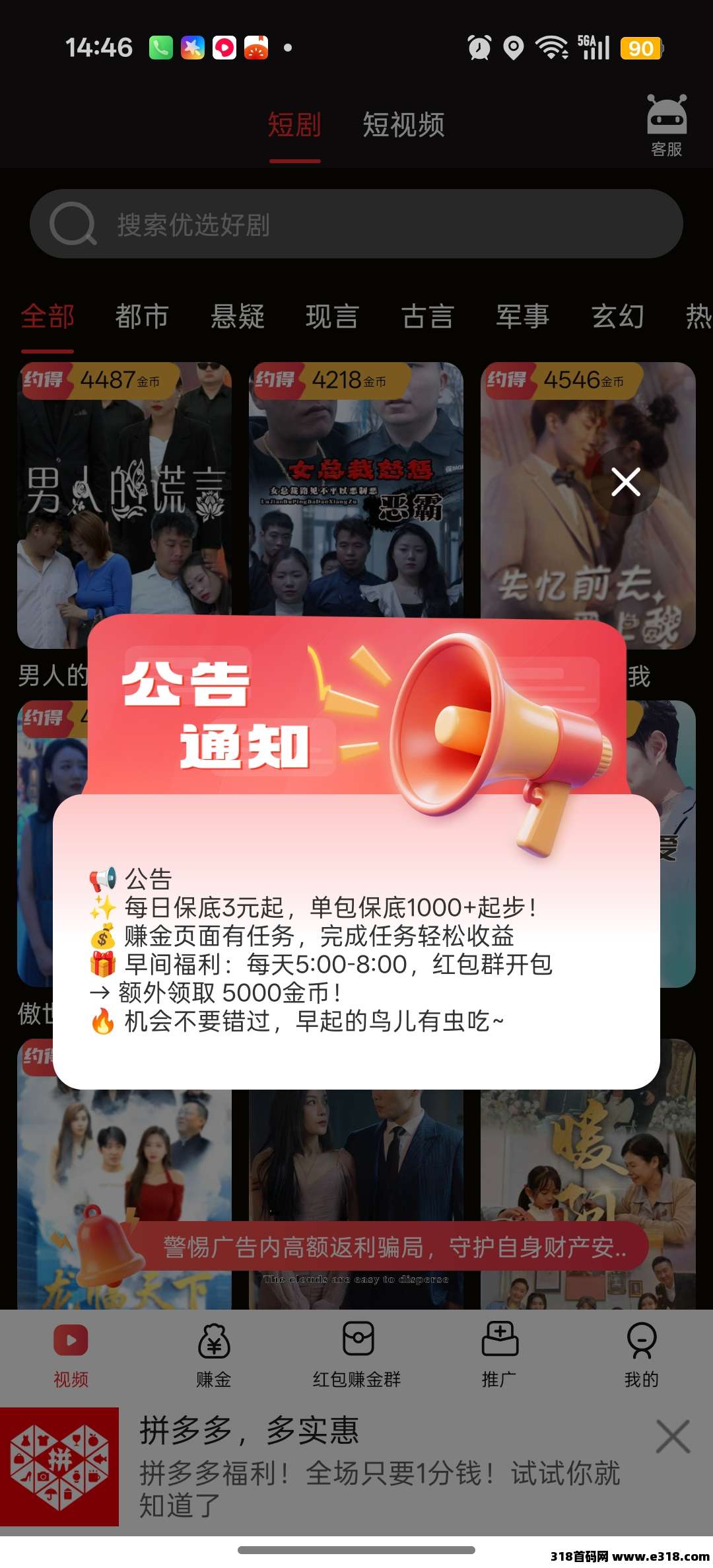 每日18点前赚满15米额外奖励4米